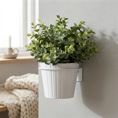 Como planteholder i hvidt lakeret metal. Hvid ring til ophæng af planter på væggen. Sæt ringen på væggen og sæt en urtepotte i. Planteholderen er super smart til at få de grønne planter ind som en del af boligindretningen hvis man ikke lige har en reol, skænk eller hylde som planten kan stå på.
