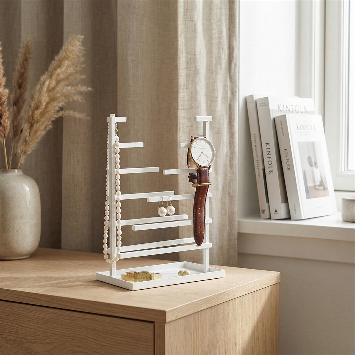 Hæng dine hverdagssmykker på smykkeholderen og hav dem lige ved hånden, når du skal bruge dem om morgenen og have dem af om aftenen. En smuk måde at opbevare dine smykker på.