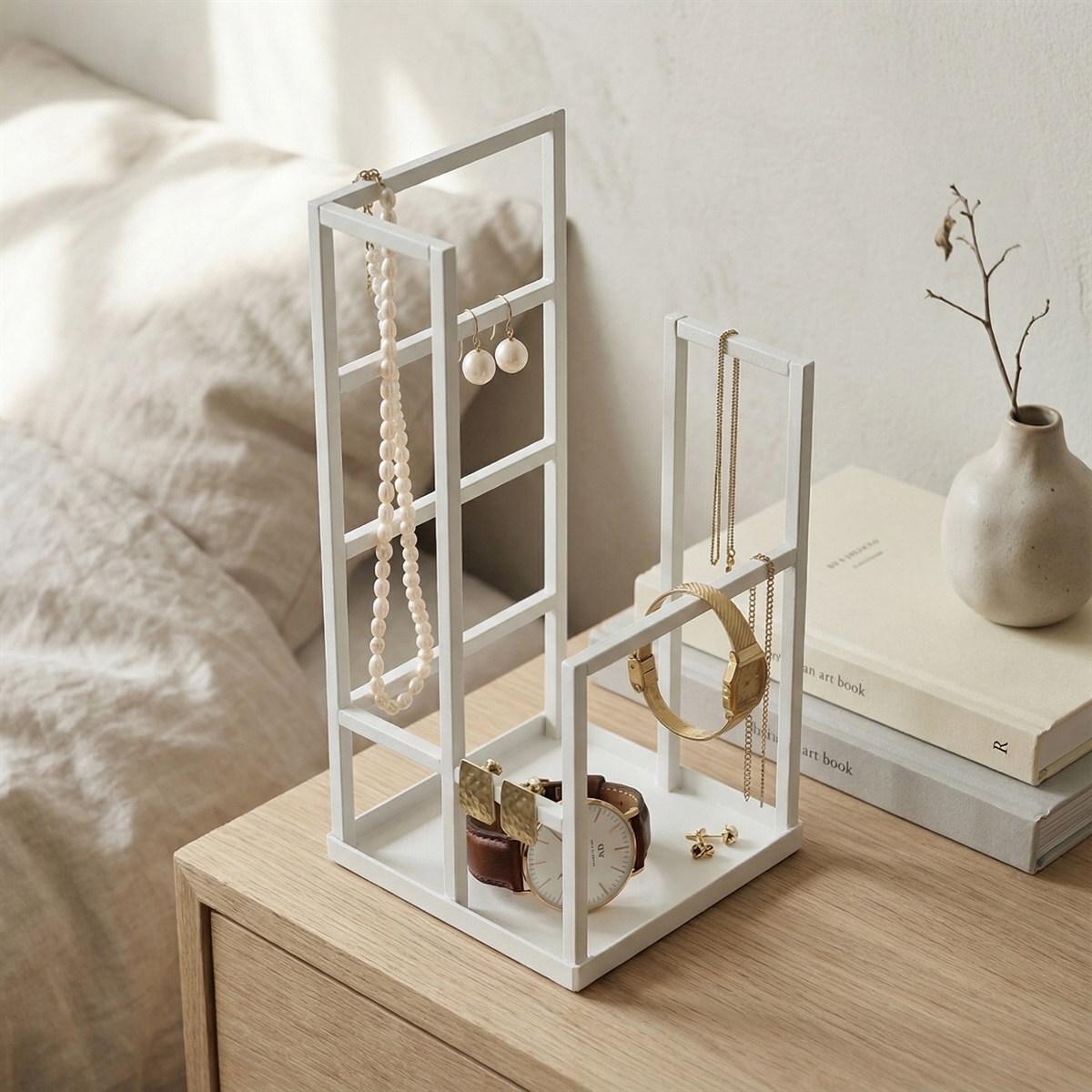 Hæng dine hverdagssmykker på smykkeholderen og hav dem lige ved hånden når du skal bruge dem om morgenen og have dem af om aftenen.
