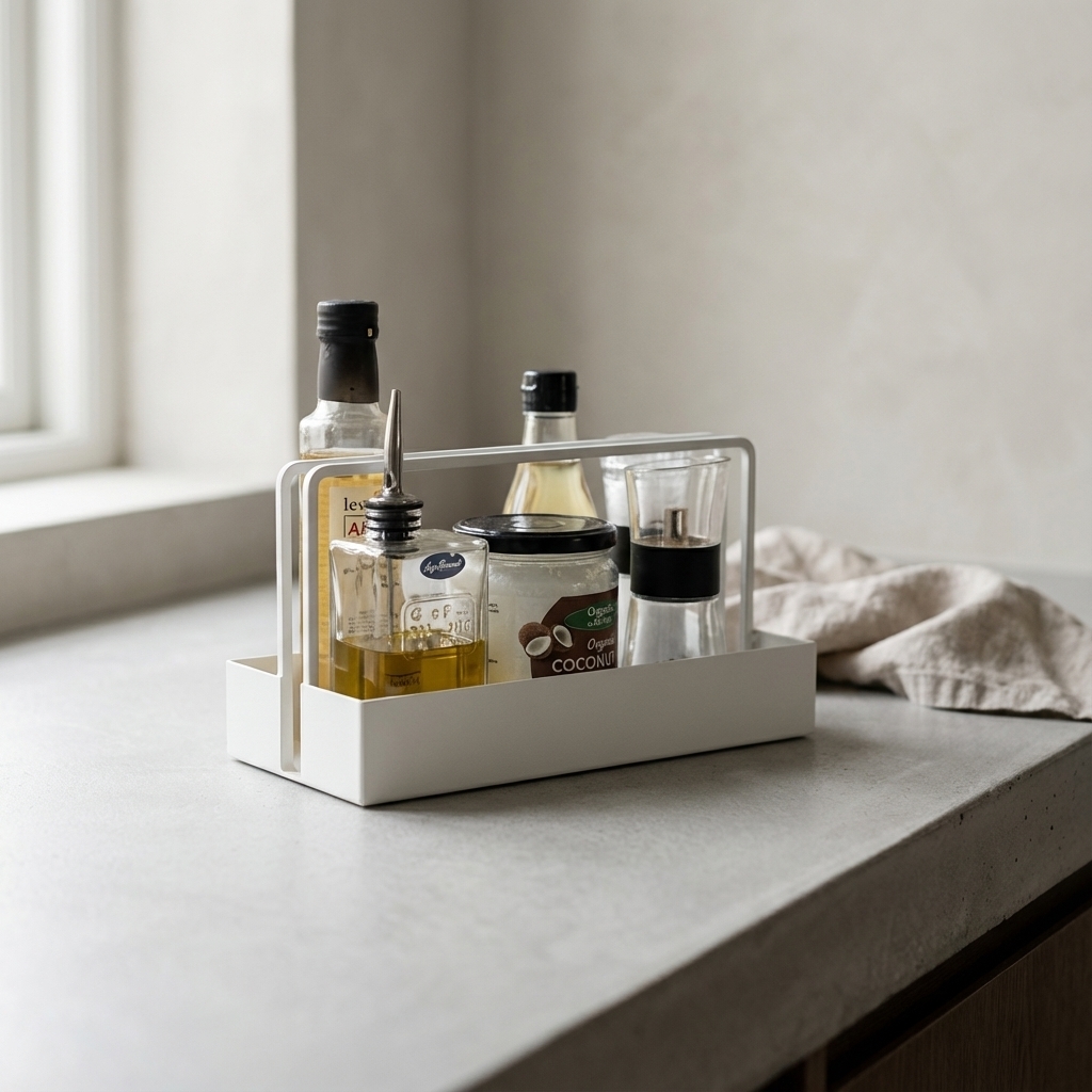 Toolboxen er f.eks. helt perfekt i køkkenet til opbevaring og organisering af dine mest brugte krydderier, olier og salt og peber.
