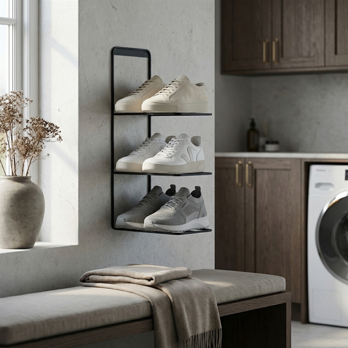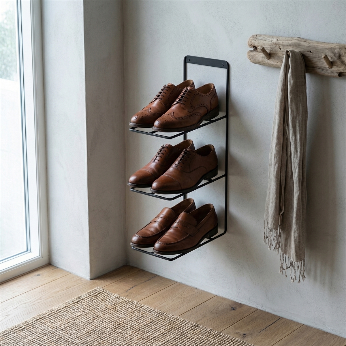 Væghængt skoreol til 3 par sko - sort