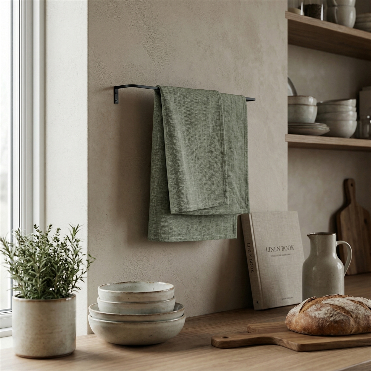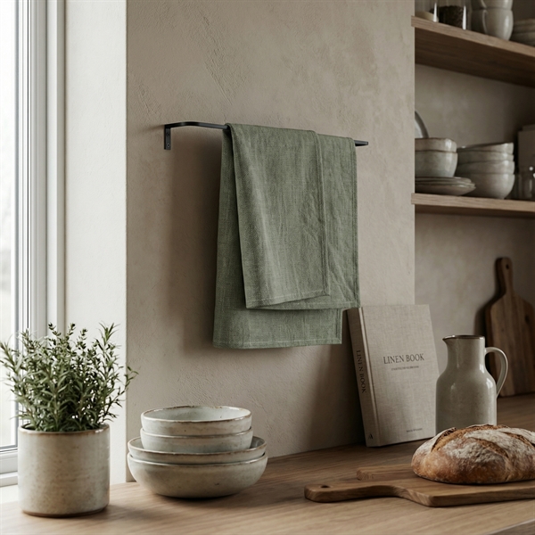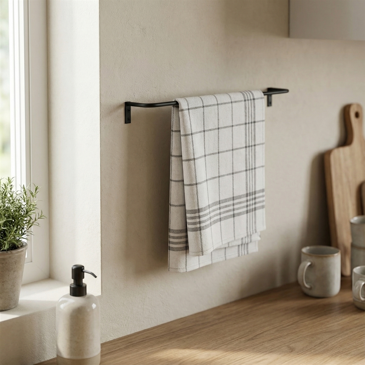 Sort holder til væggen til viskestykker - pulverlakeret metal