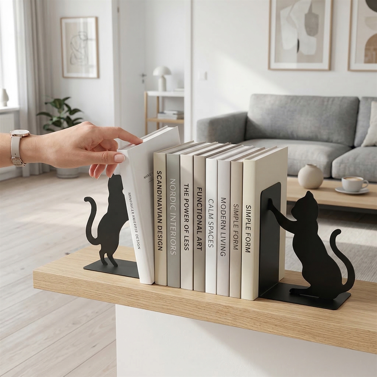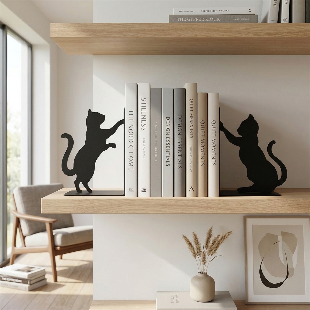 Bogstøtter i metal der forestiller to katte der leger samtidig med de støtter dine bøger.