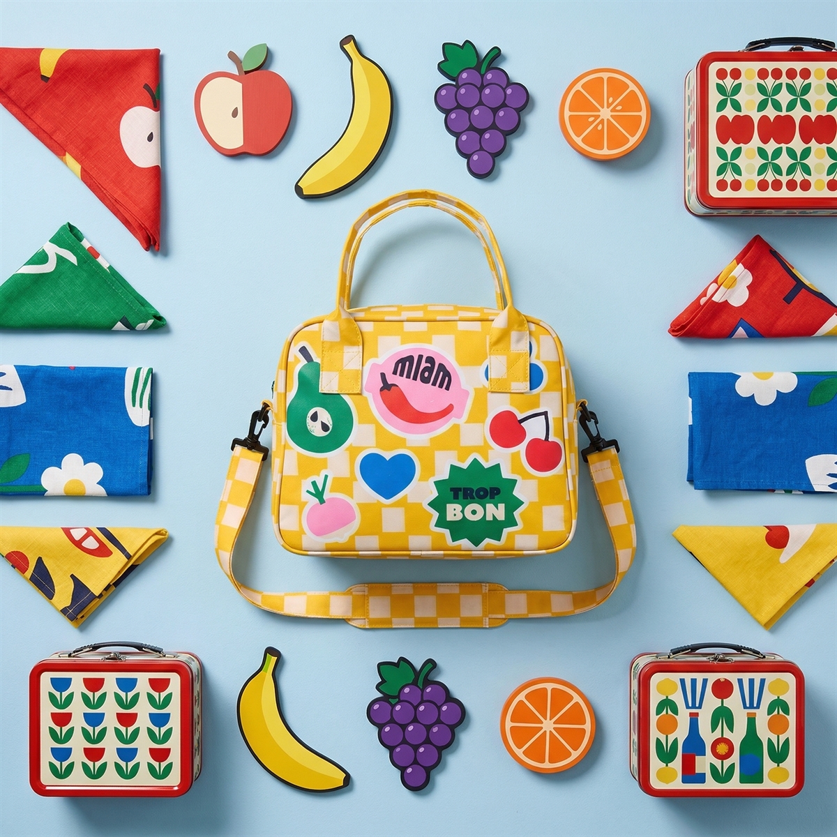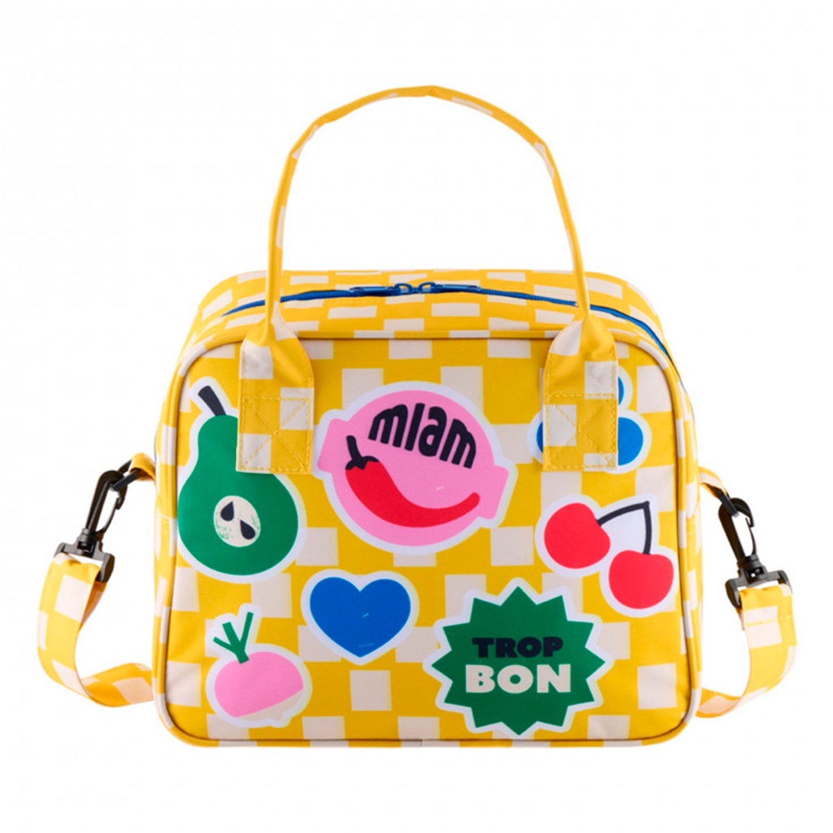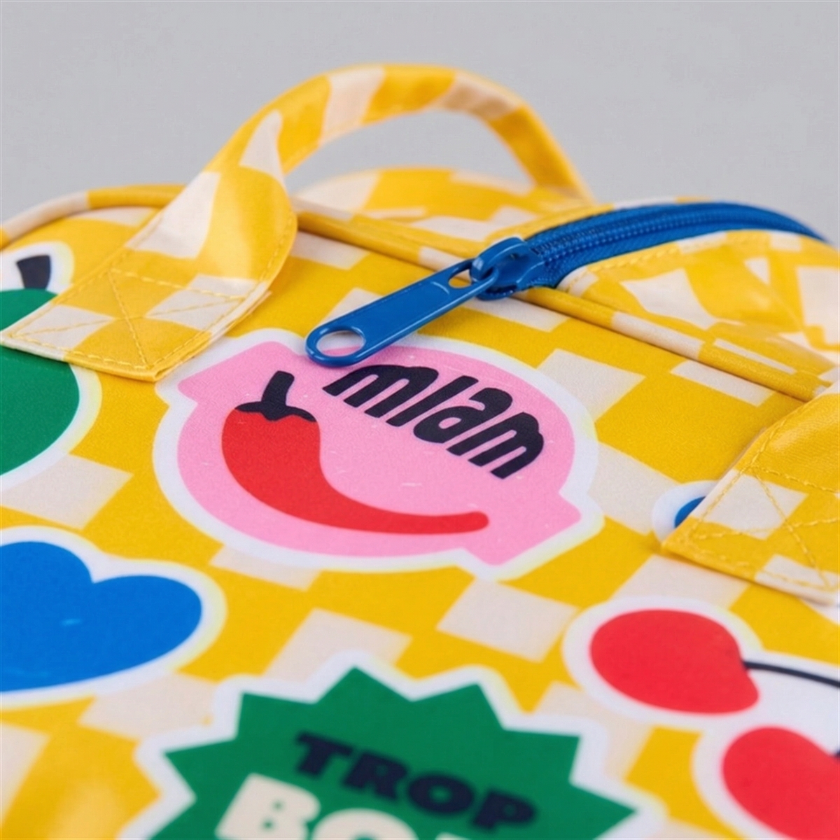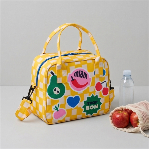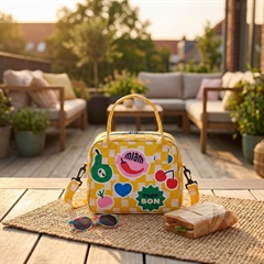 En flot køletaske med et kitchet design i glade farver