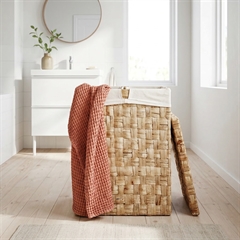 Dixies firkantede dobbelt-vasketøjskurv lavet i lækkert lyst vandhyacint med 2 rum til inddeling af dit vasketøj.