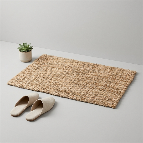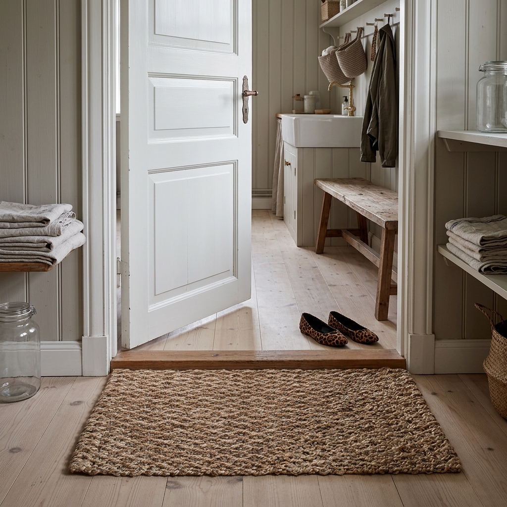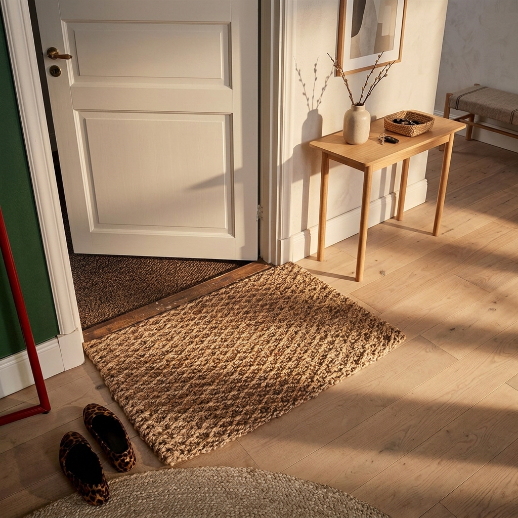 Fanny Jute dørmåtten er i jutens naturlige farve og måler 60 x 90 cm. med skridsikker latex bagside.