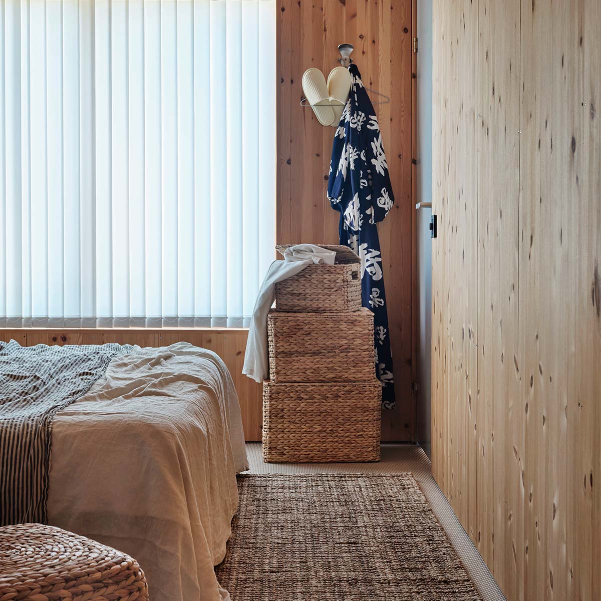 Kisterne er lavet af sildebensmønstret flettet vandhyacint og har håndtag i siderne.