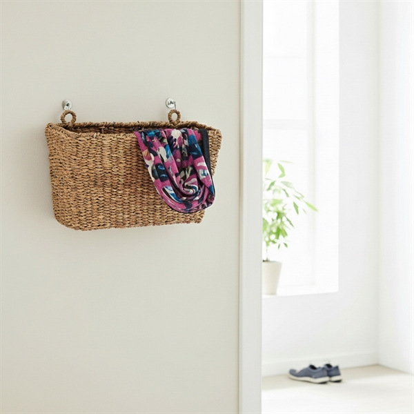 En robust opbevaringskurv til ophæng på væggen. Kurven er fremstillet af håndflettet søgræs i en lækker blød kvalitet.