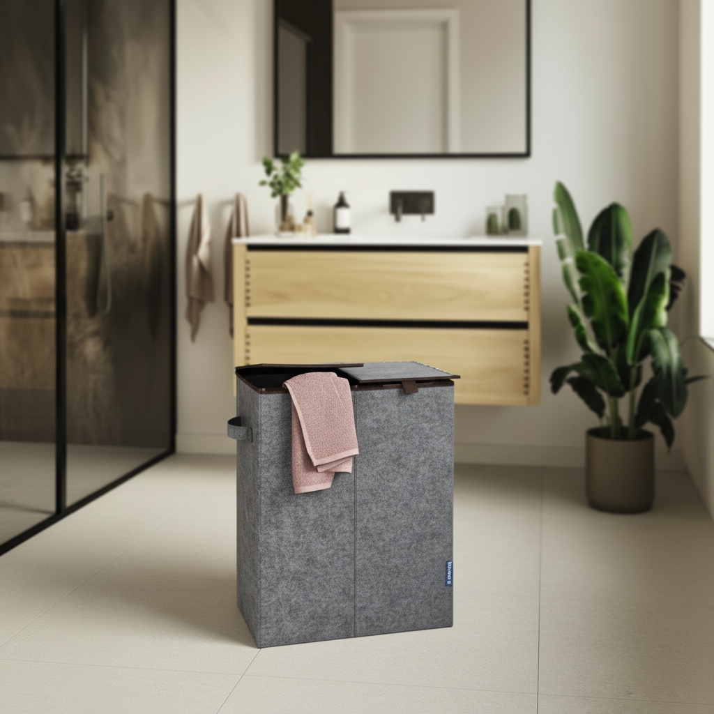 Dobbelt Vasketøjskurv i Mørkegrå Filt
