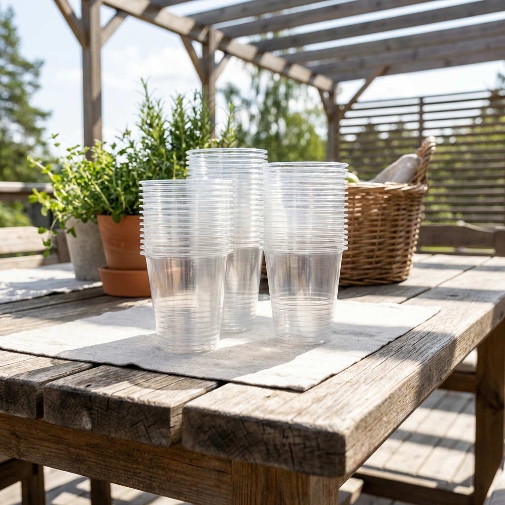 De store plastglas er helt perfekte til drikkevarebordet til havefesten, bryllupsfesten, konfirmationen, barnedåben og meget mere.