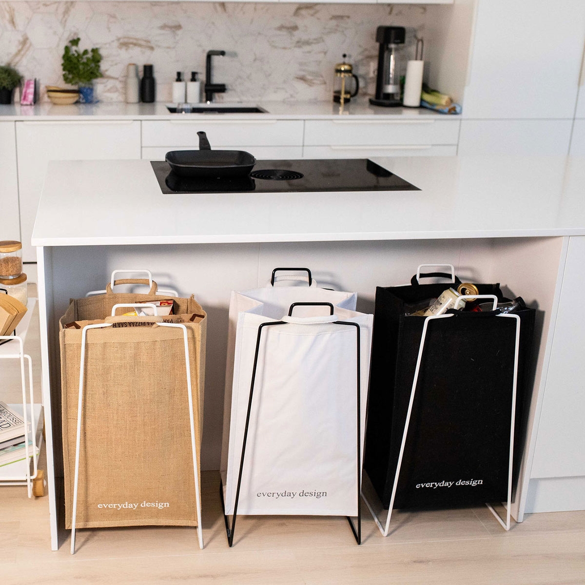 Posen sættes ned i et stativ, også fra Everyday design, og du kan nu nemt og enkelt affaldssortere eller opbevare dit vasketøj med stil.