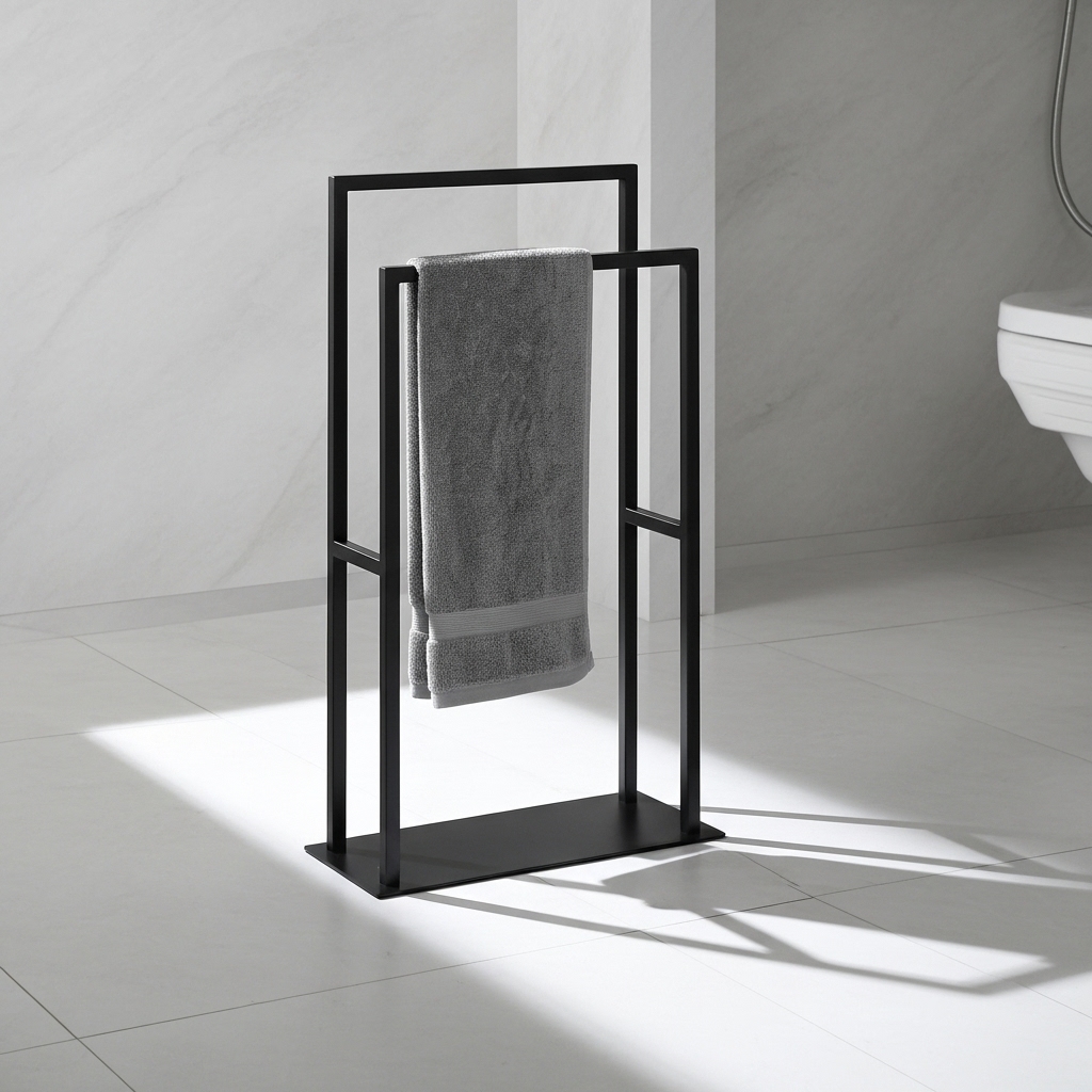 Fritstående håndklædeholder i sort metal - Rivaltana