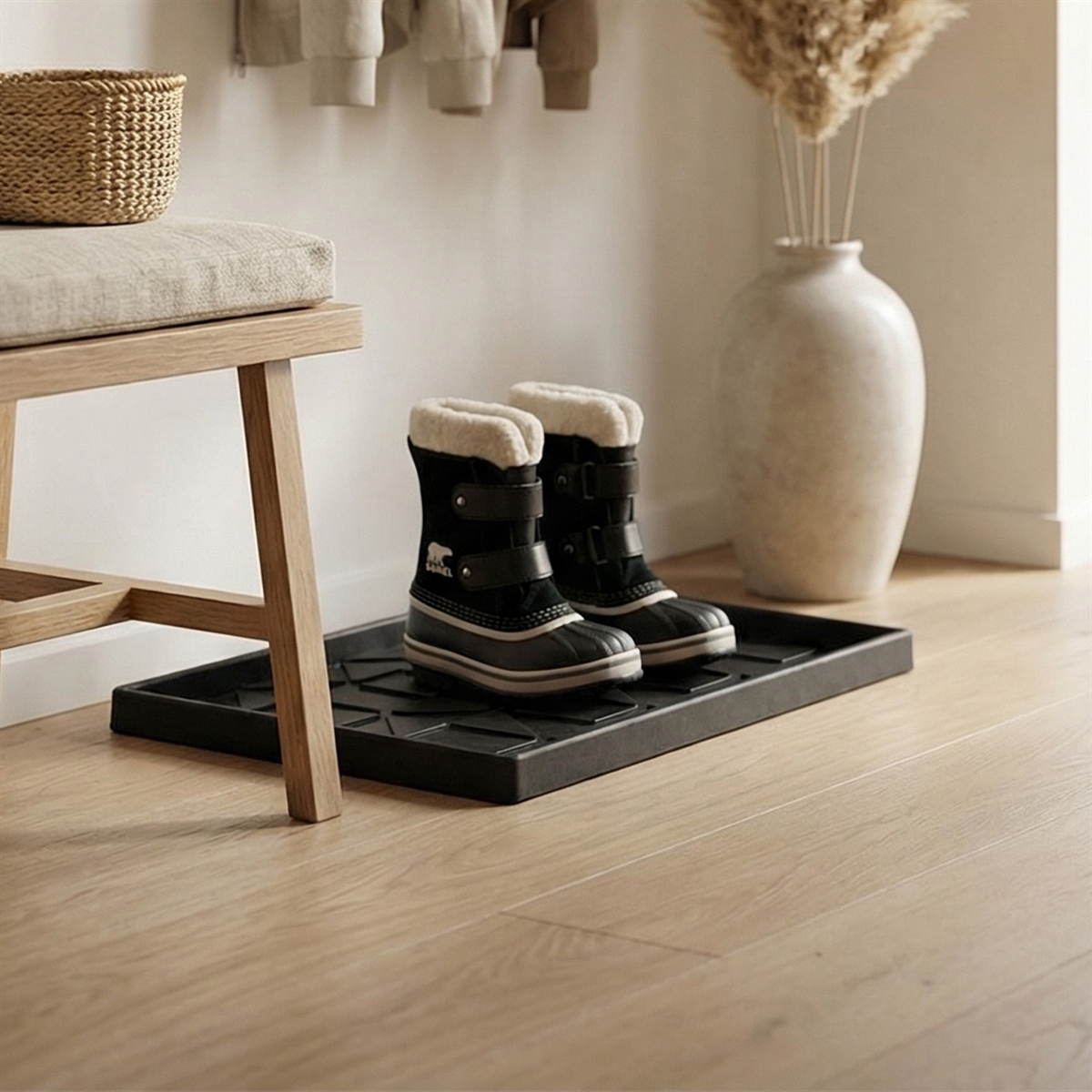 En praktisk skobakke til når børnene kommer ind med sjapvåde støvler. Skåner gulvet og opsamler også skidt og sand.