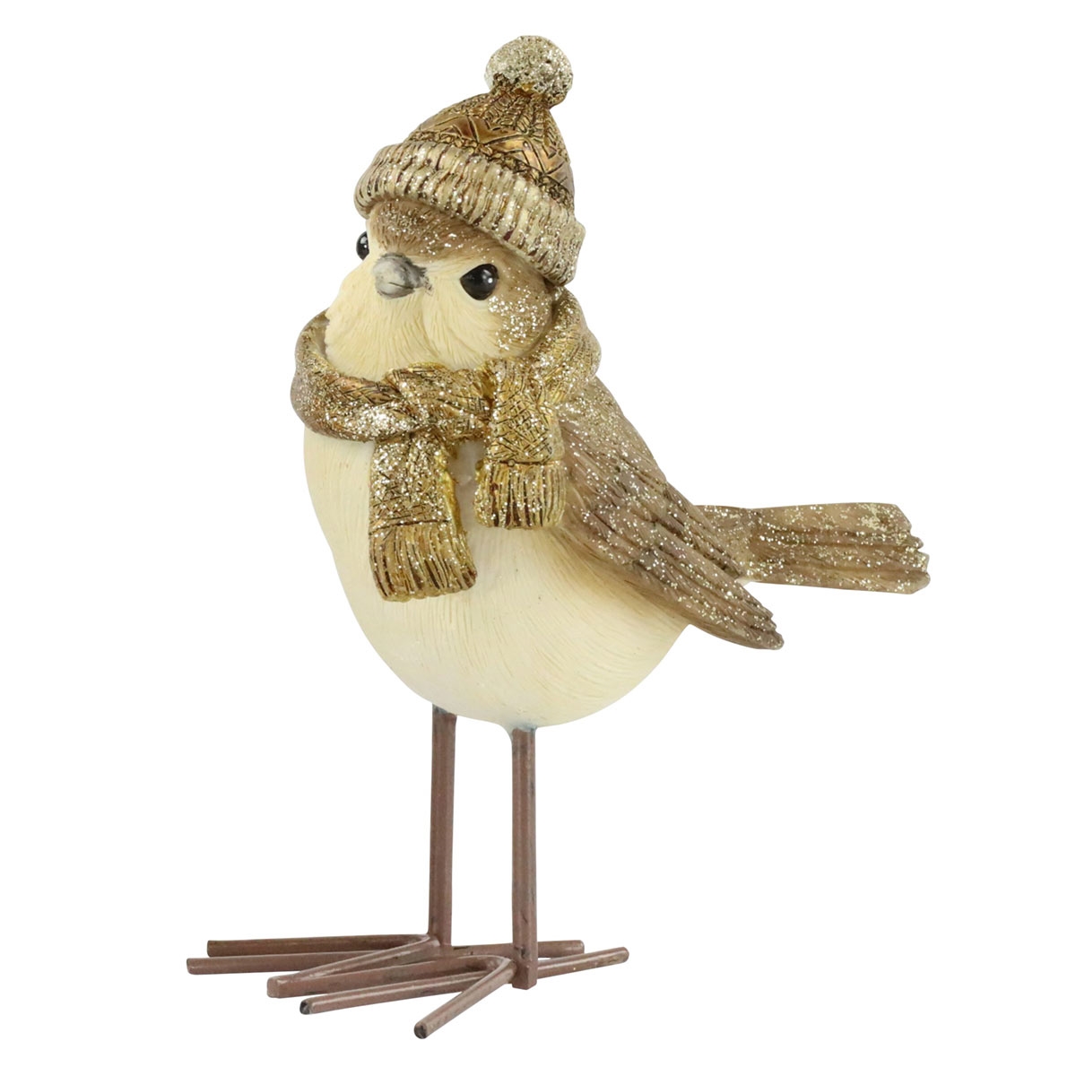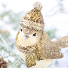 Sødeste lille "Guldfugl" med en dejlig varm hue og halstørklæde. Lavet af polyresin