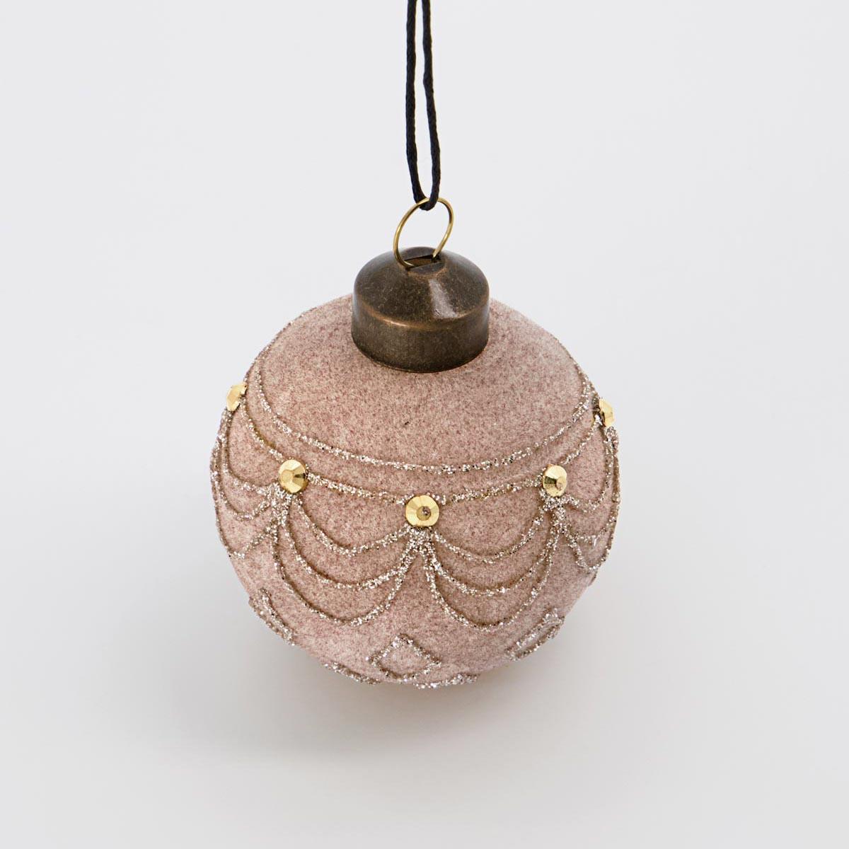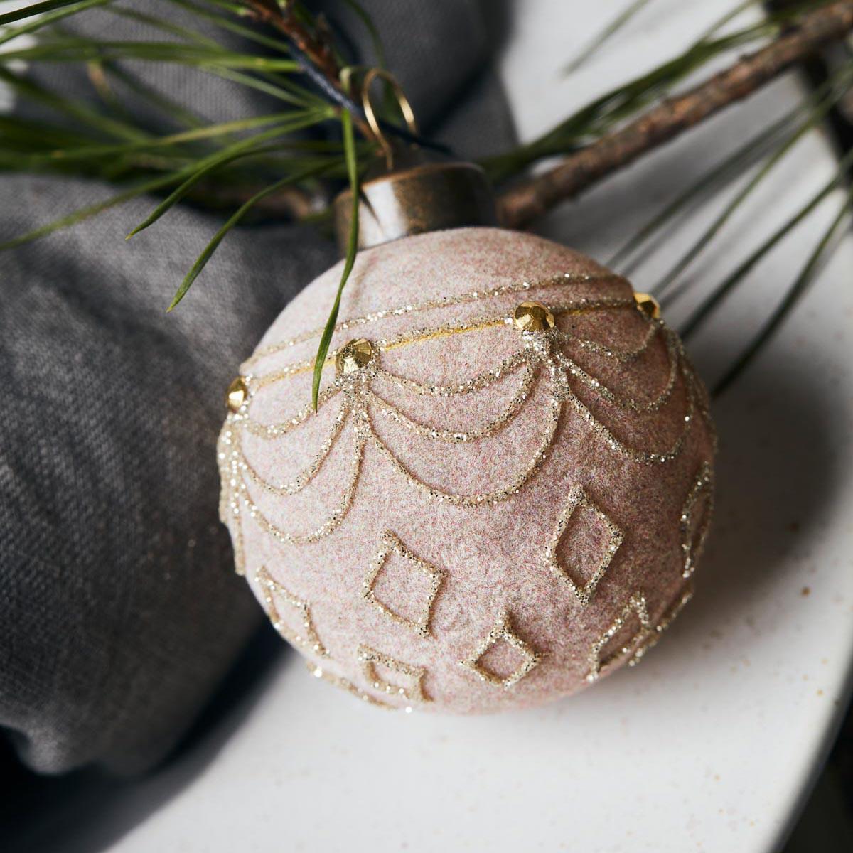 House Doctor julekugle i glas med velour og glimmer - Lille i sand