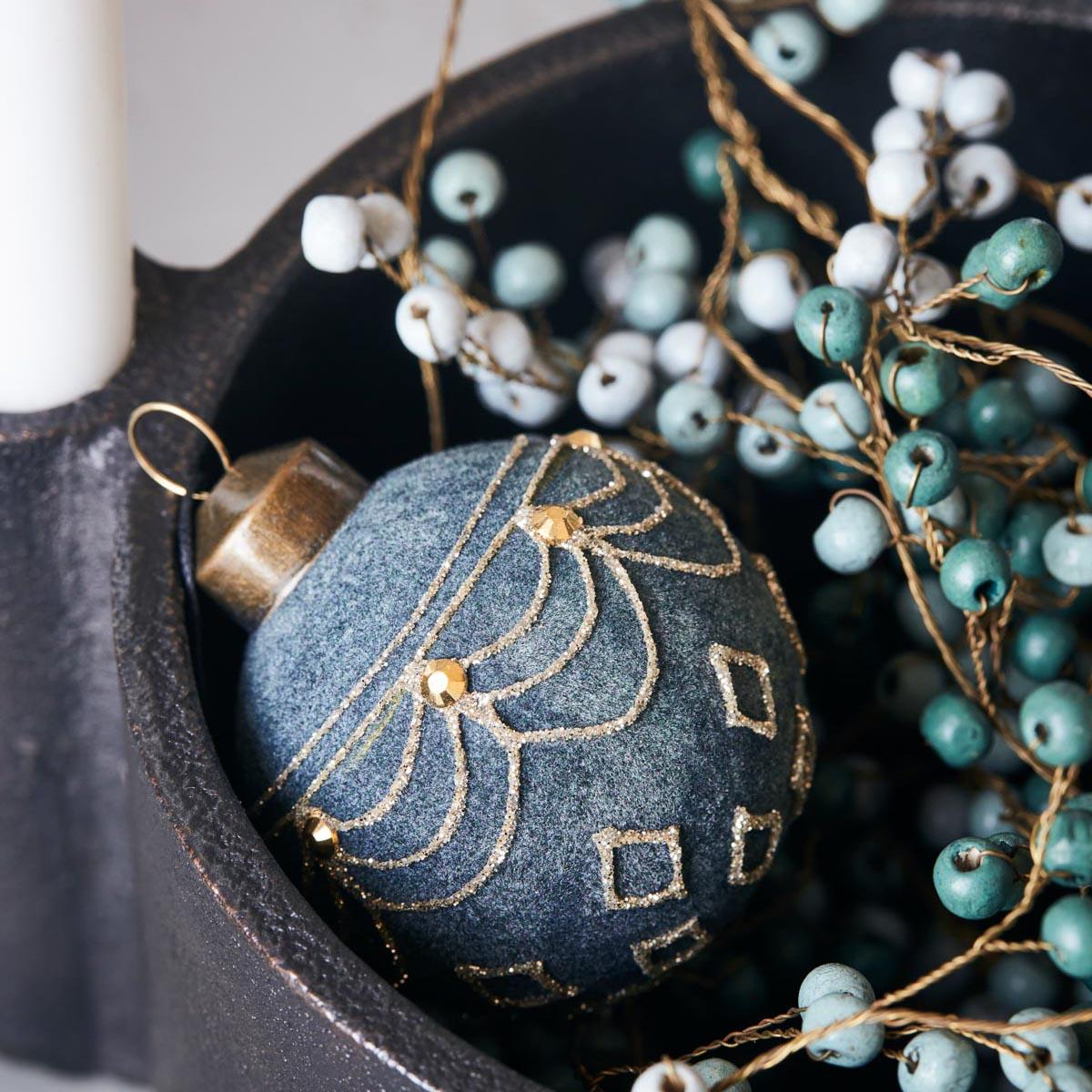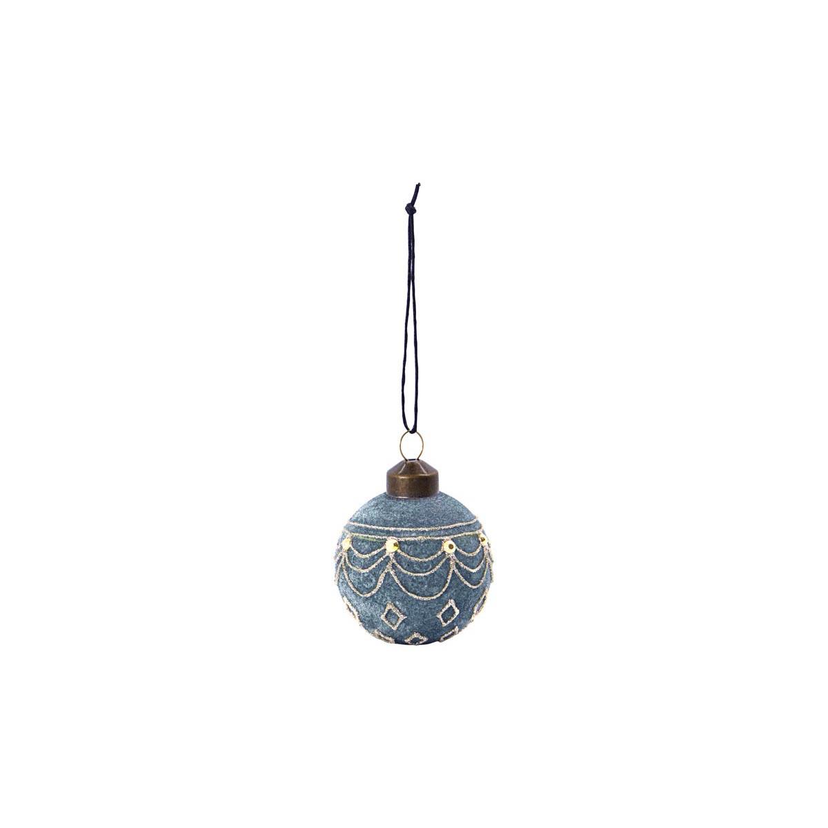 House Doctor julekugle i glas med velour og glimmer - Lille i dusty green