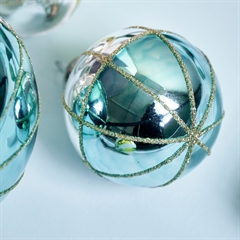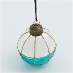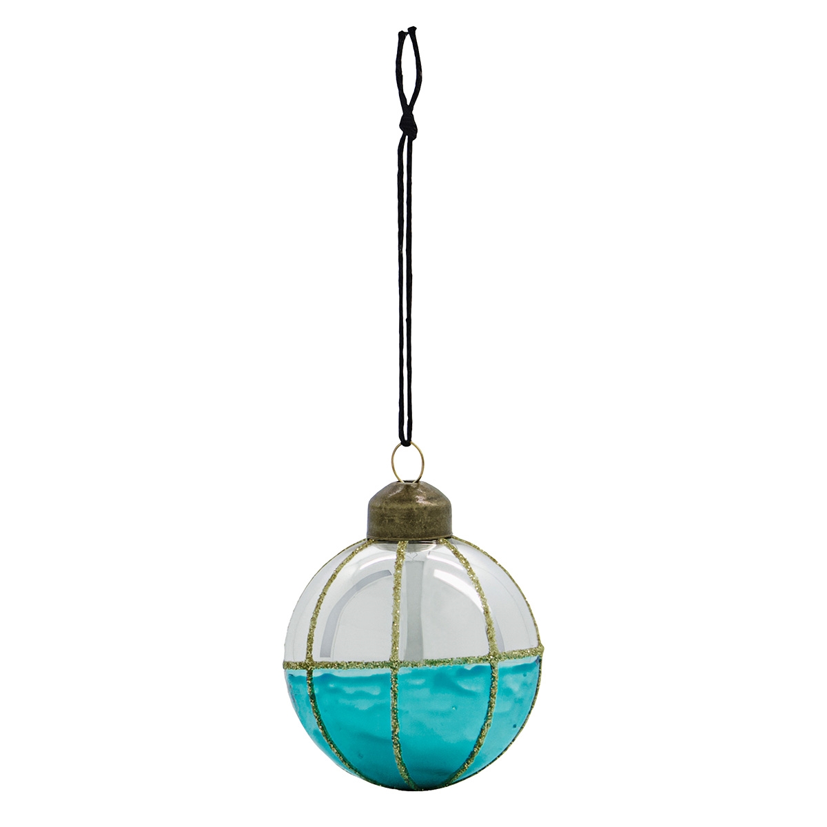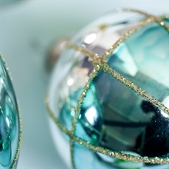 En smuk julekugle i turkis glas til et farverigt og strålende smukt juletræ.