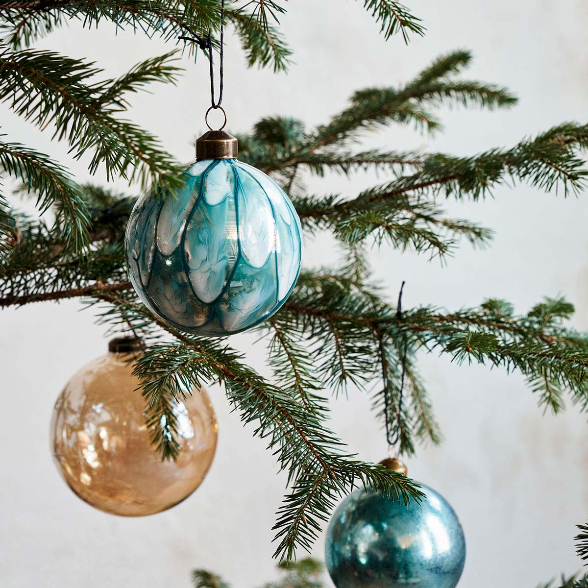 House Doctor julekugler i glas - Runy sæt i lyseblå