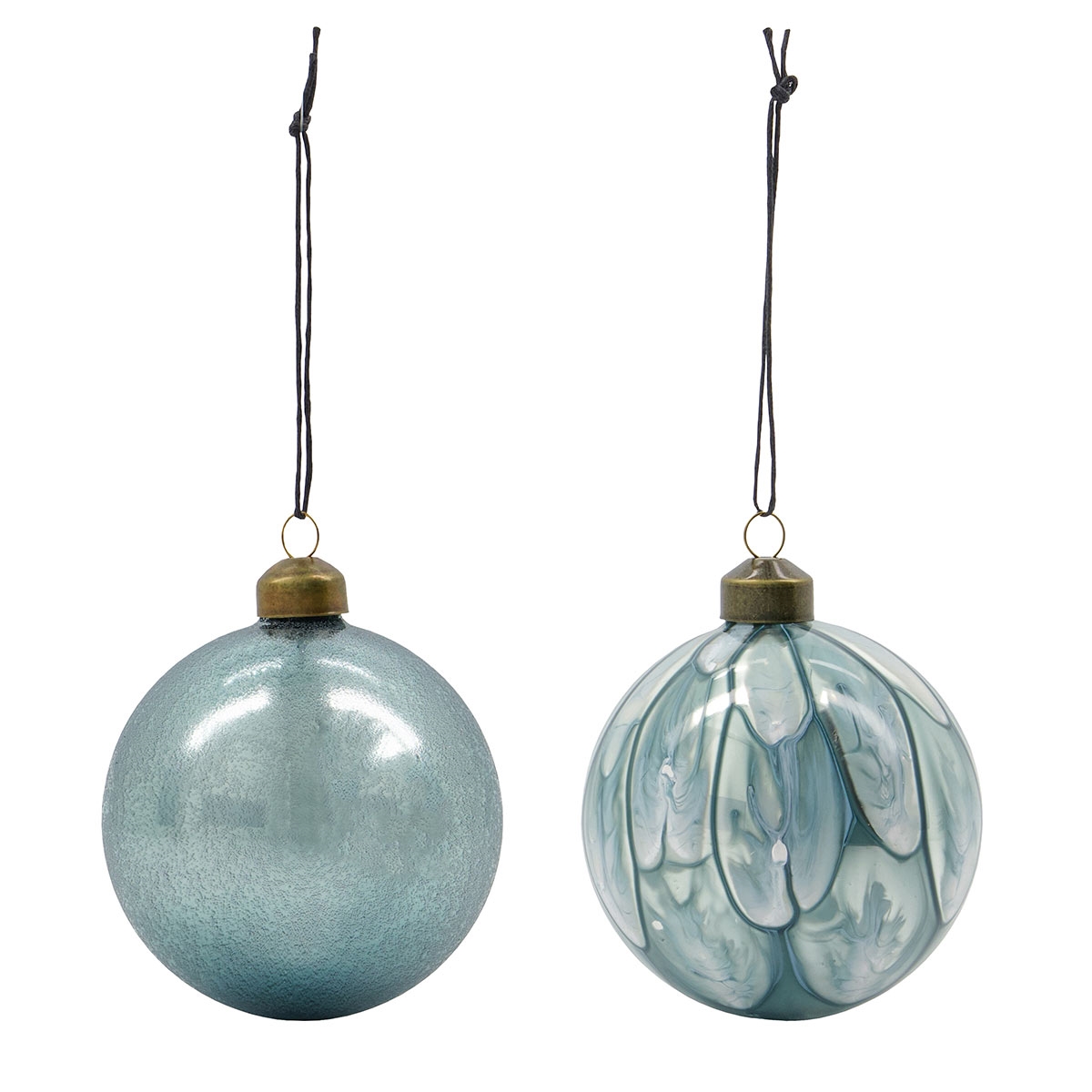 Sæt med 2 stk. smukke julekugler i glas med den fineste lyseblå finish.