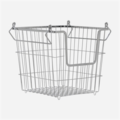 Håndtagene på trådkurven kan vippes ind i kurven og du kan herefter stable kurvene og samtidig have noget heri.