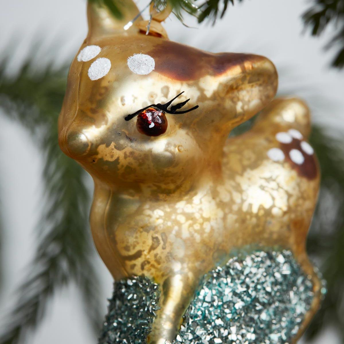 Her har du det fineste lille rådyr i glas med glimmer for et festligt tvist.
