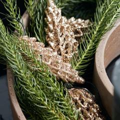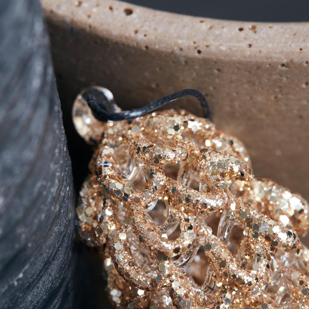 Glitrende, smukke kogler med guld glimmer til at hænge på juletræet, sætte i en juledekoration eller hænge i vinduet.