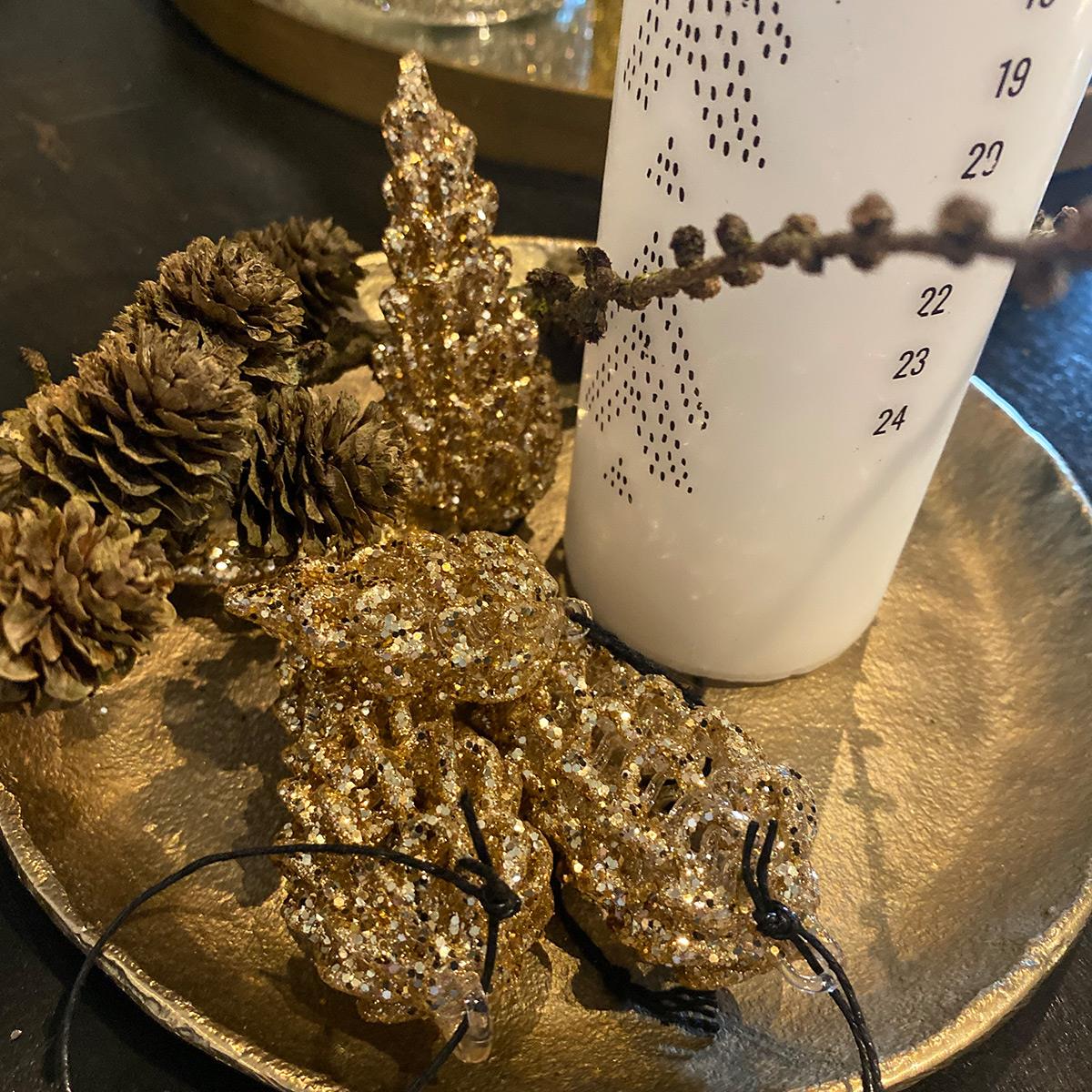 House Doctor julepynt i glas, kogler, stor i guld