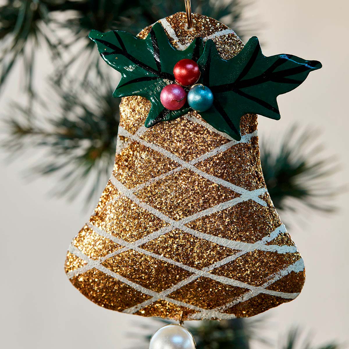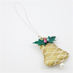 Juleophænget Christmas Bell er lavet i kanvas med glimmer.