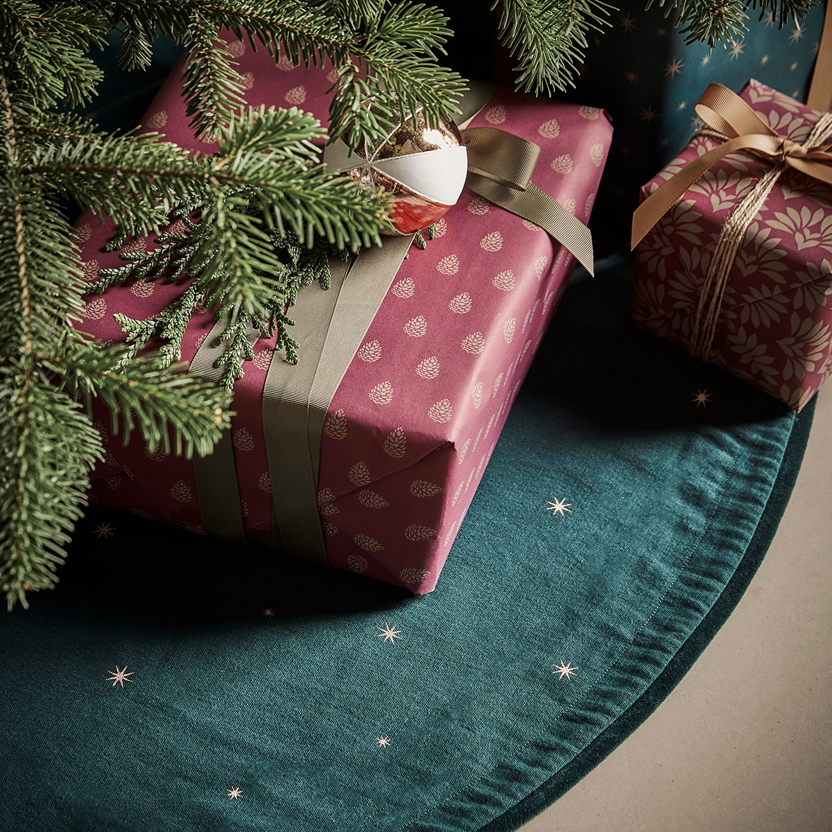 Den flotte mørke farve med de fine stjerner sørger for at dit juletræ rigtig kommer til sin ret med de smukke grønne farver, så juletræ og gaver bliver hjemmets midtpunkt i den søde juletid.