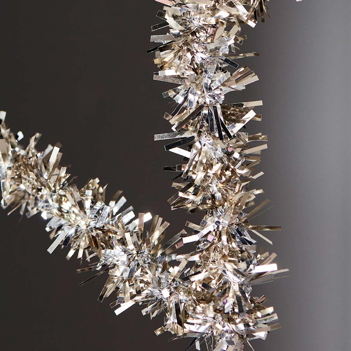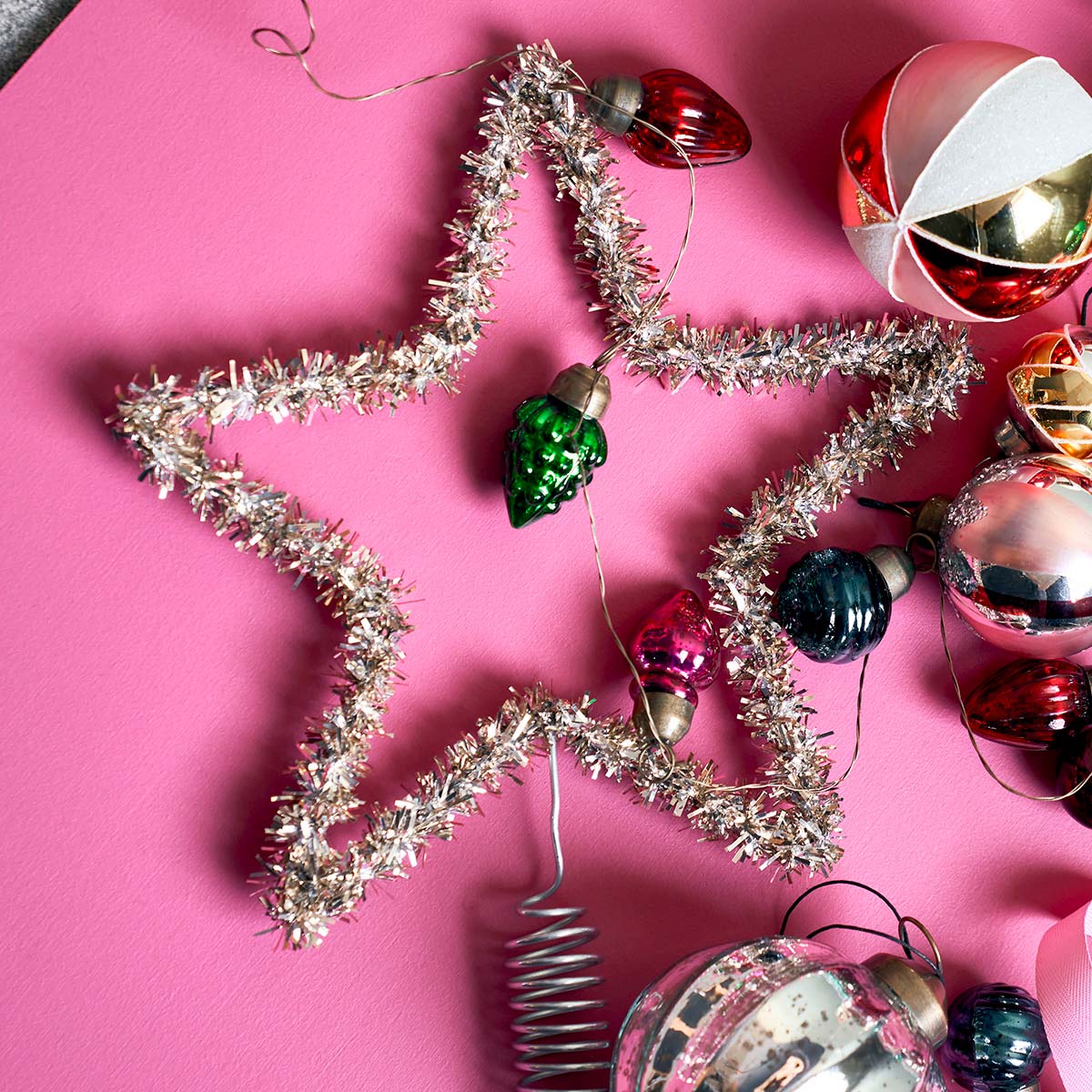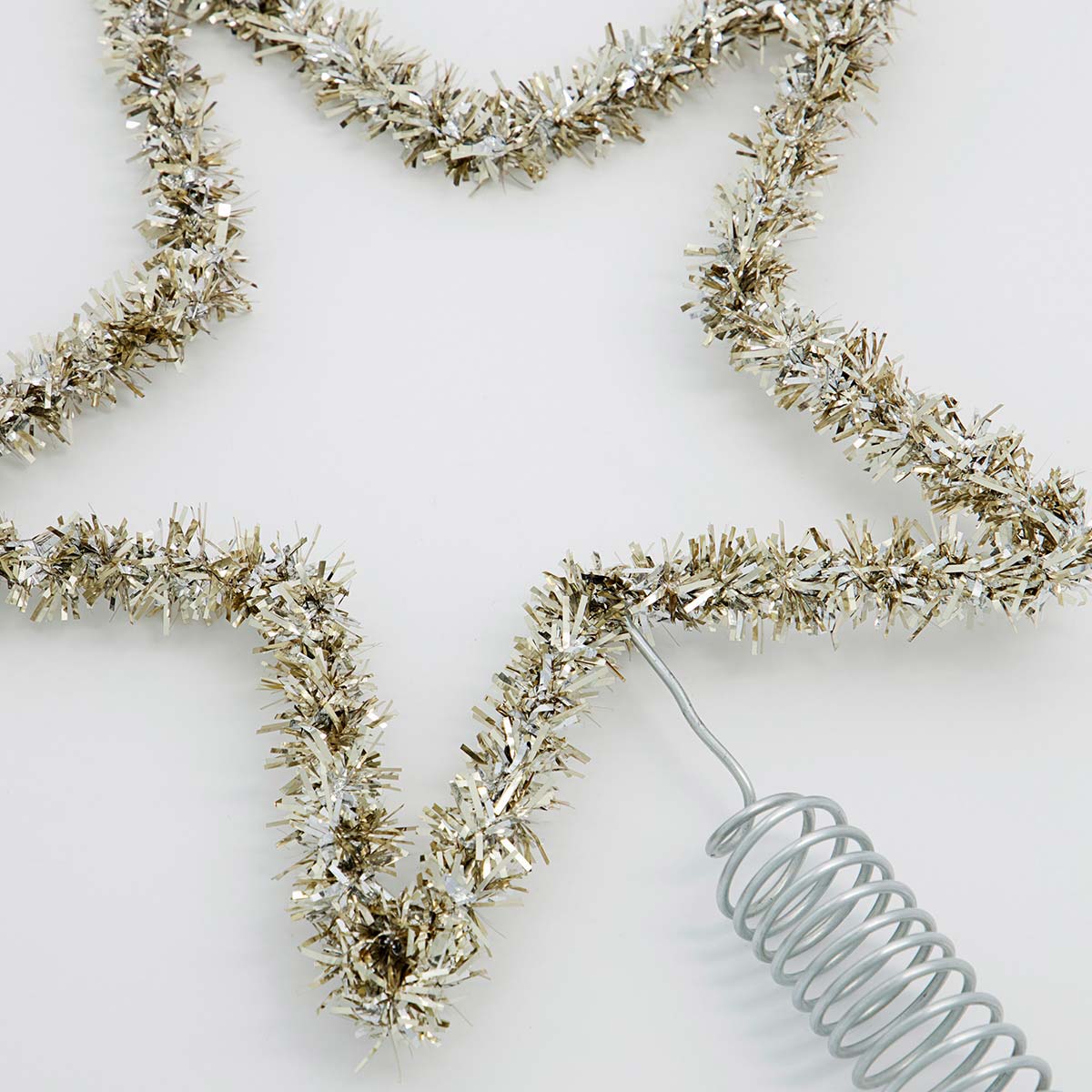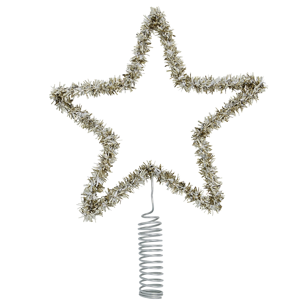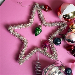 Joy Topstar er lavet i metal med sølv lametta-lignende stykker der dækker metalrammen.