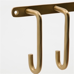 Den lille knagerække er lavet af rustfrit stål belagt med en hamret messing finish.