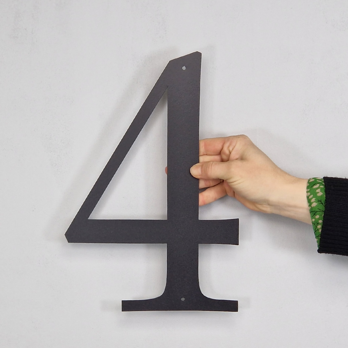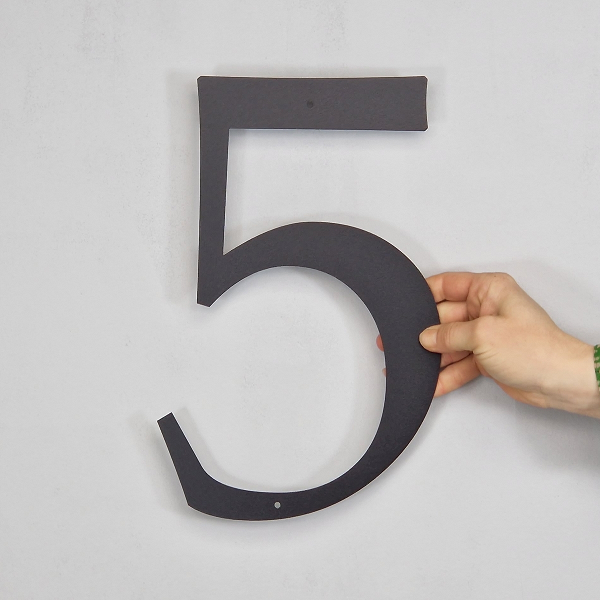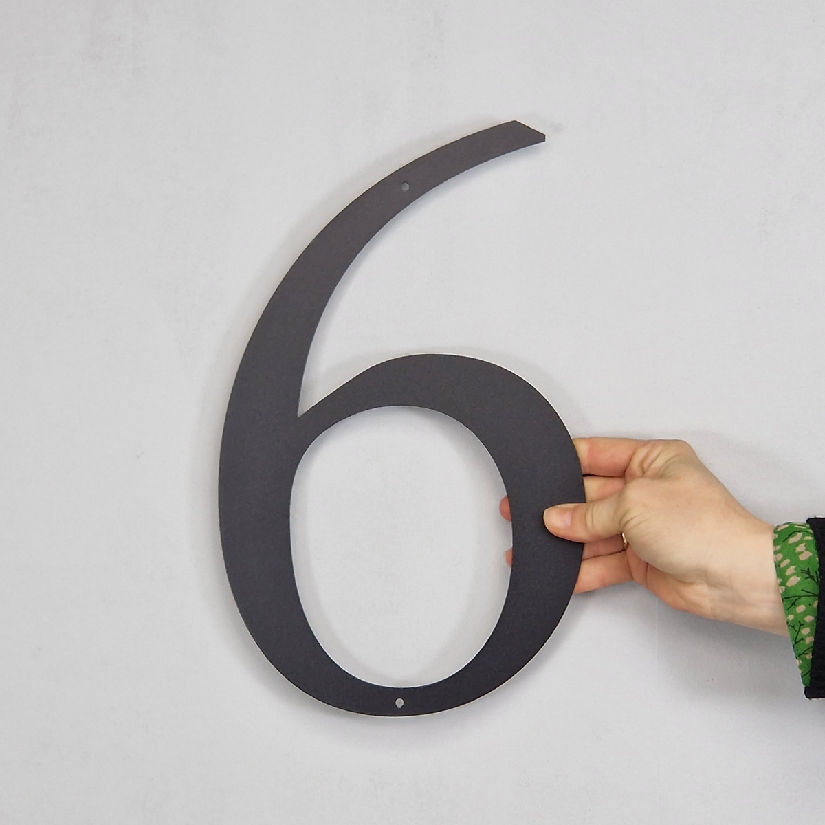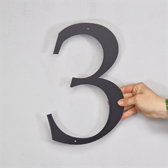 Husnummeret er lavet i galvaniseret stål med en mat sort pulverlakering.