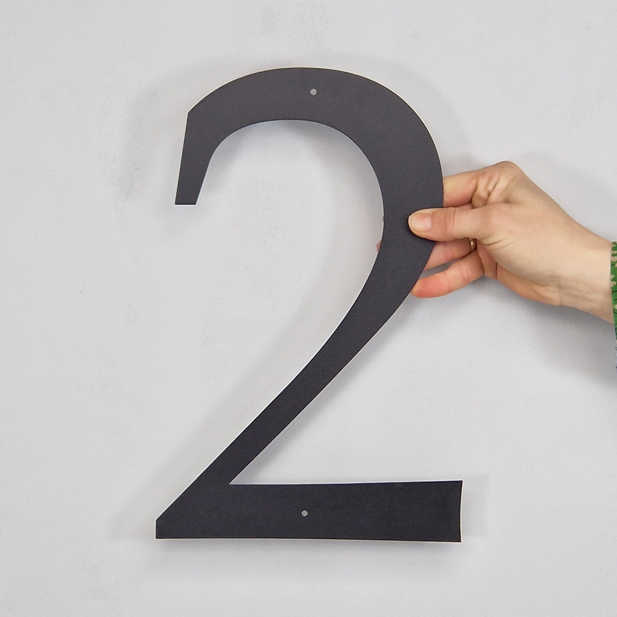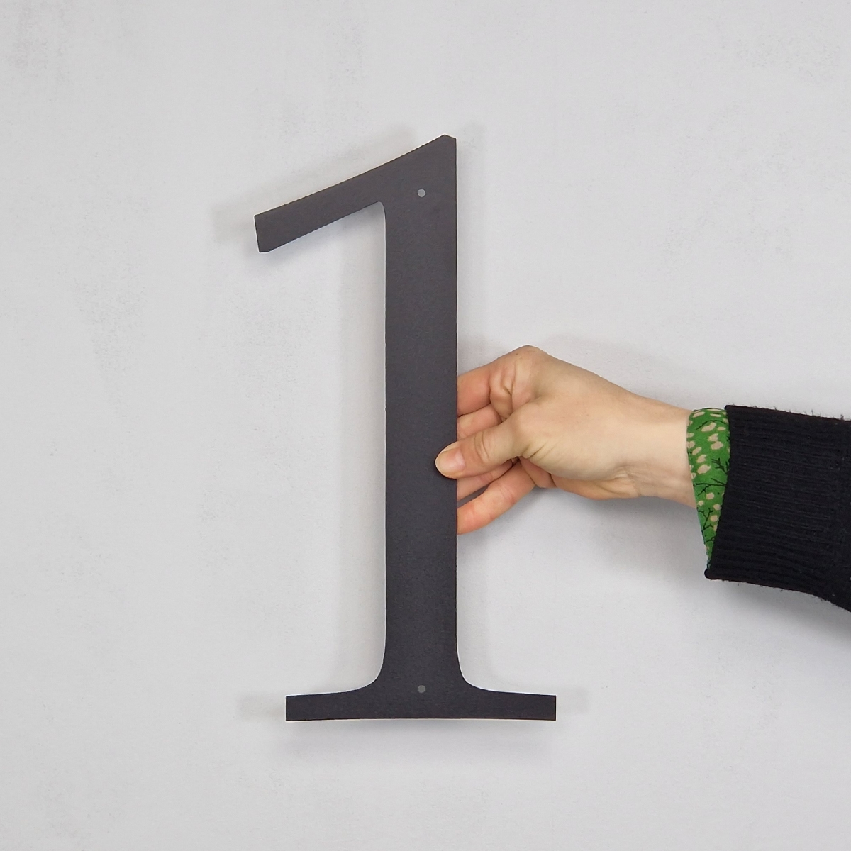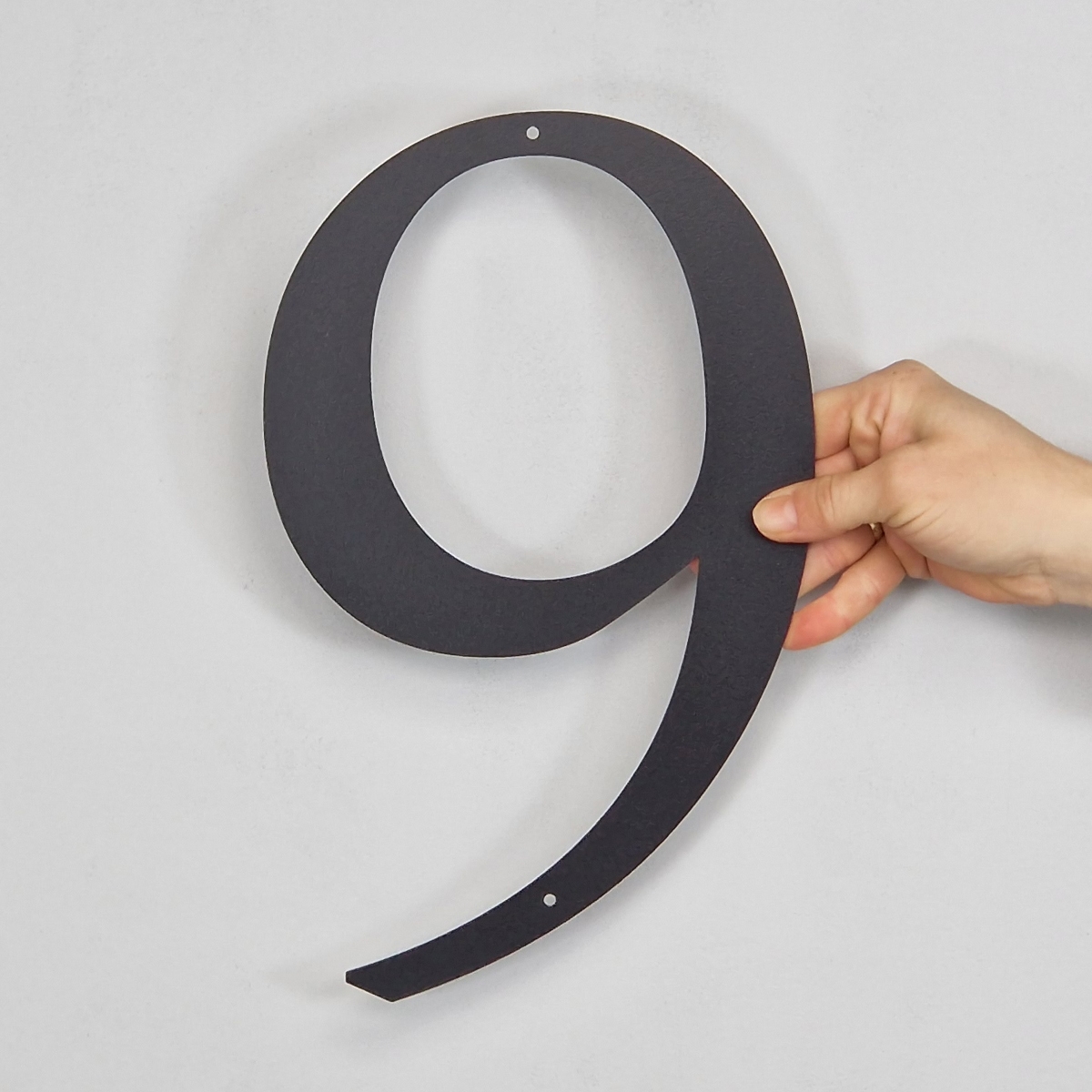 Husnummeret er lavet i galvaniseret stål med en mat sort pulverlakering.