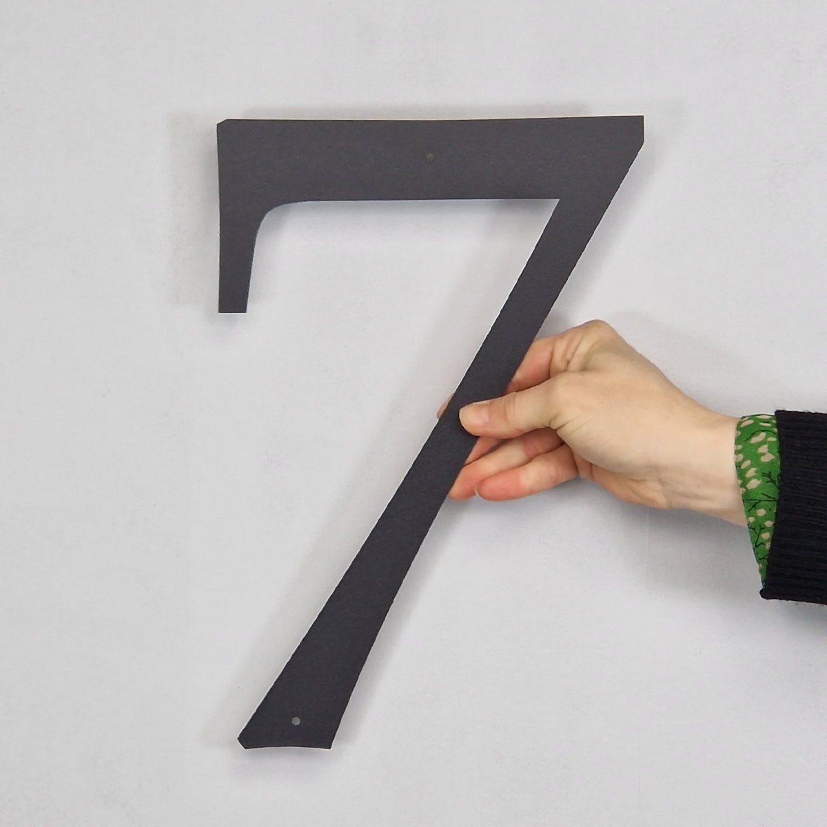 Metal husnumrene skrues direkte i væggen gennem for borede huller i nummeret.