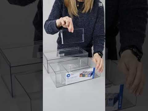 Kassen er lavet i klar plast med 3 rumdelere du kan tage ud alt efter behov. Kassen er stabelbar så du let kan stable 2-3 eller flere ovenpå hinanden efter behov.