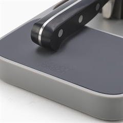 Få styr dine knive i skuffen med denne funktionelle knivblok i grå plast fra Joseph Joseph.