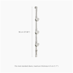 Kan sidde over en dør der er max 4,3 cm tyk. HUSK at måle din dør inden du køber.