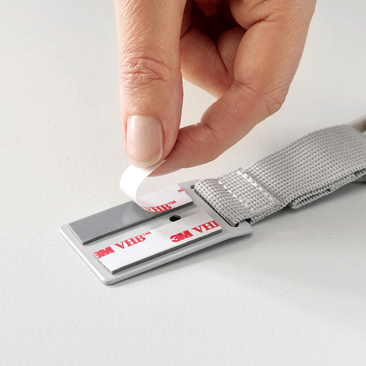 Knagen består af en krog i en kraftig tekstilsnor med tre plastikkroge der kan justeres i afstand.