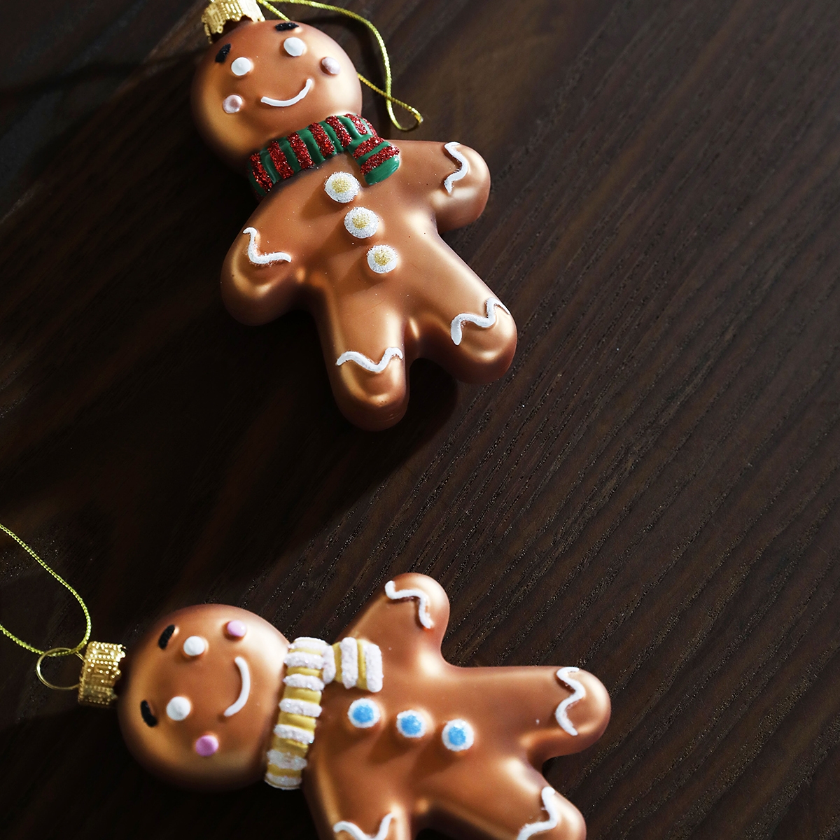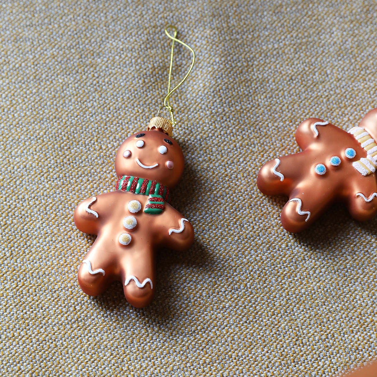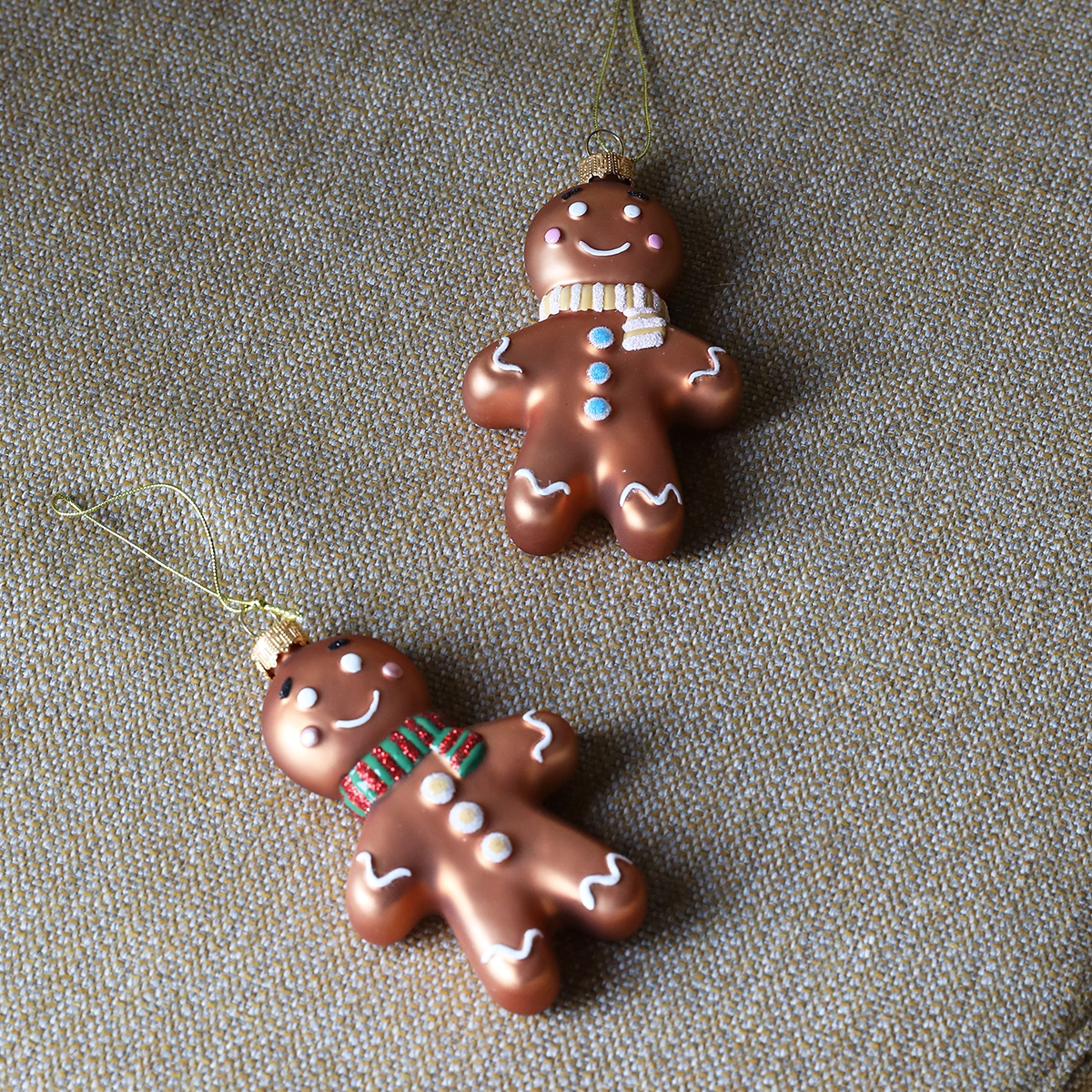 &Klevering juleophæng i glas - Gingerbread man med det fineste grønne tørklæde.