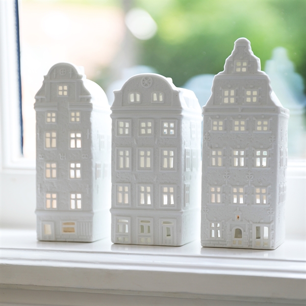 Smukke lyshuse til fyrfadslys i Hollandsk kanalhus-stil - Dette er pakken Stockholm.