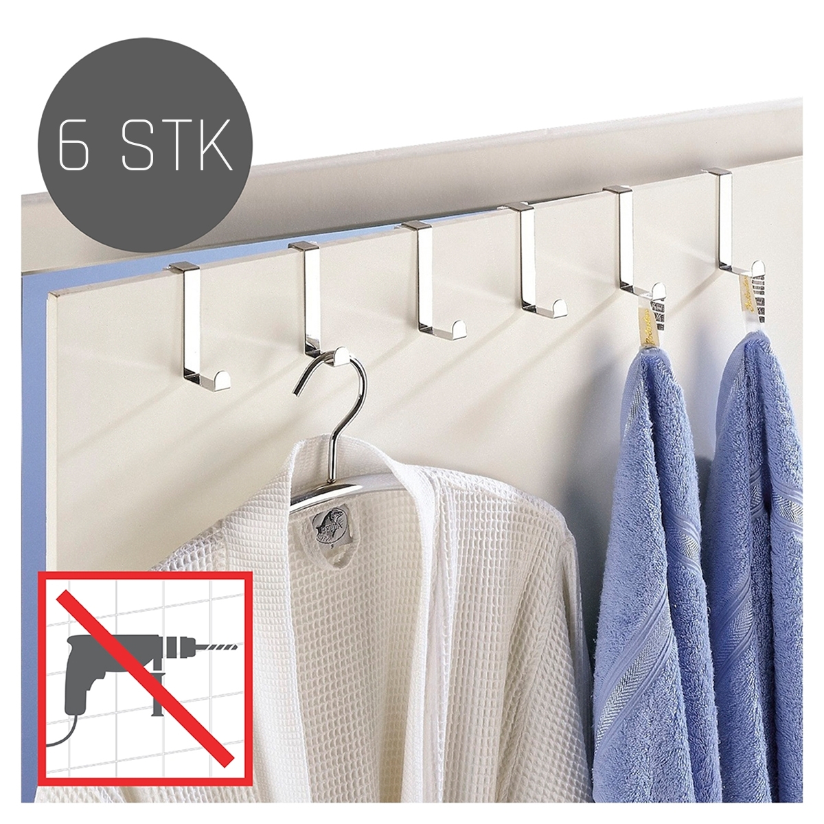 Knager til at hænge over skabslågen/døren - Elba, sæt m 6 stk - STÅL
