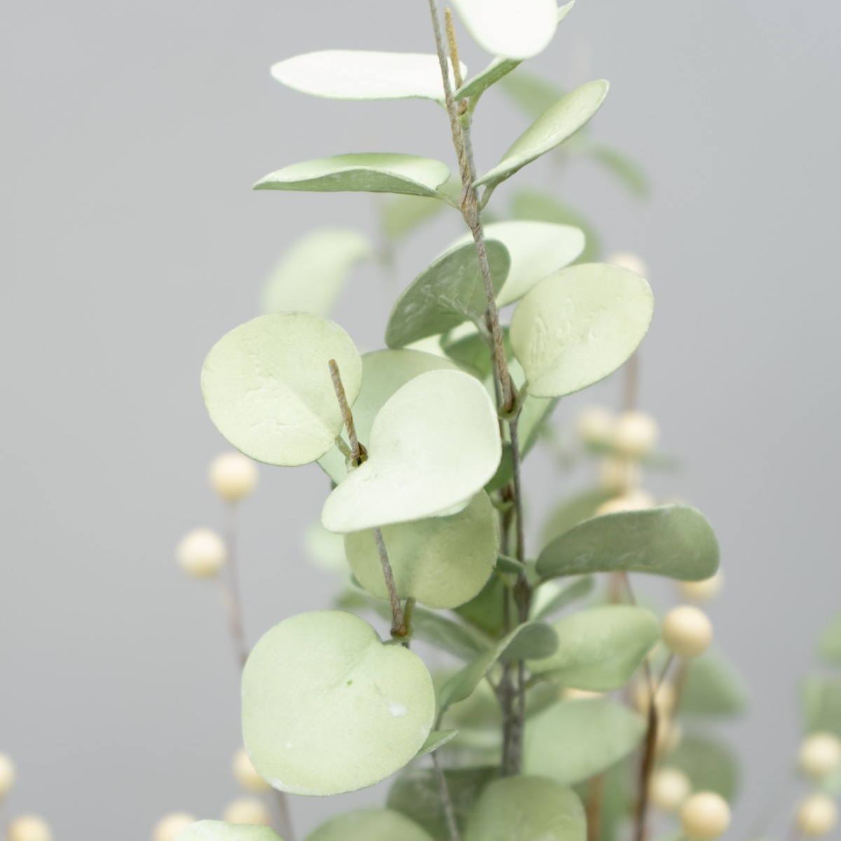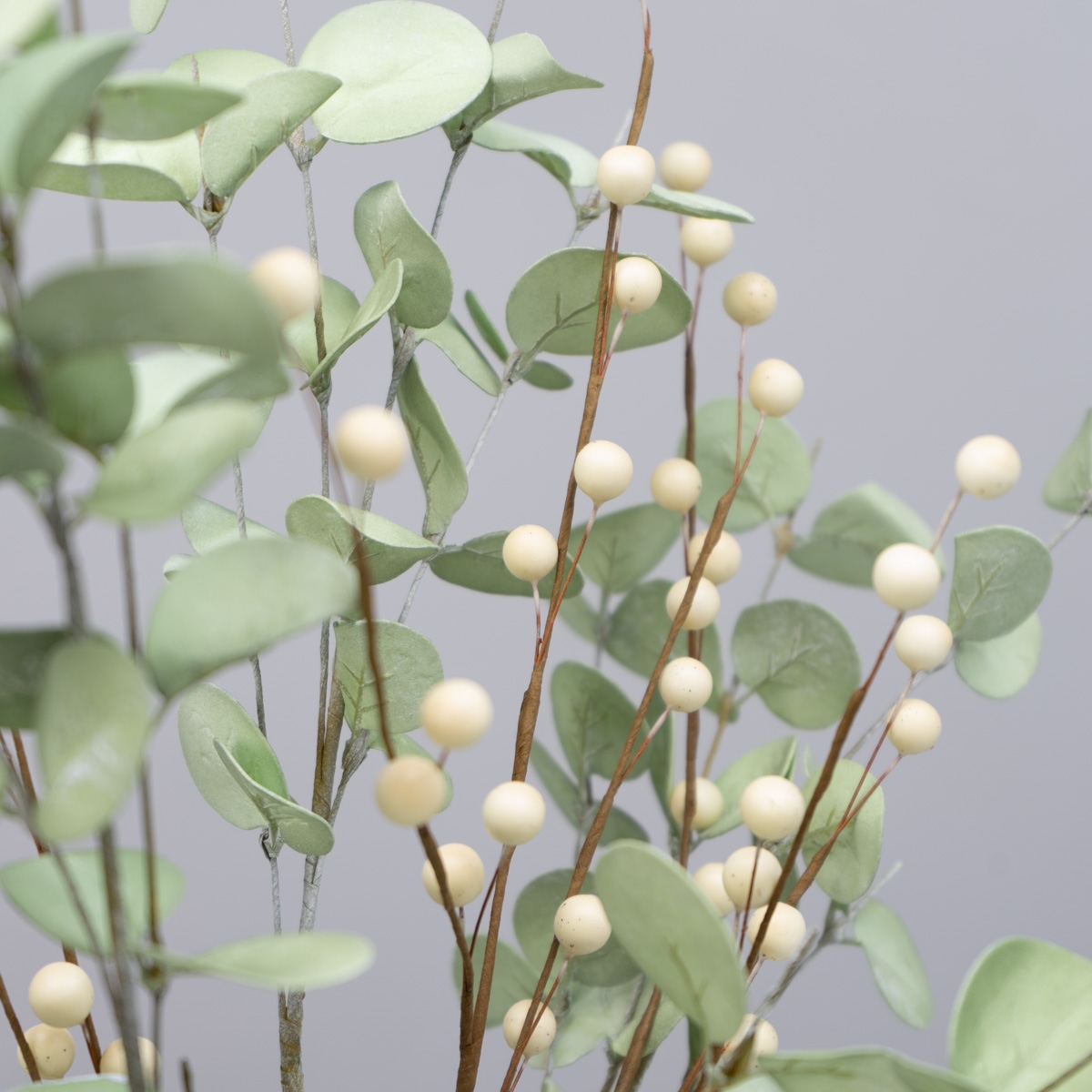 Kunstig blomsterstilk med små råhvide bær.