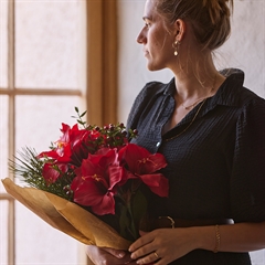 Kunstig blomst på stilk - Amaryllis 65 cm. - Rød