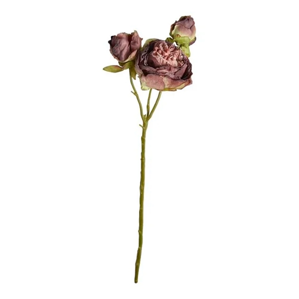 Kunstig Blomst - Pæon med tre blomsterhoveder, Burned Purple, 65 cm