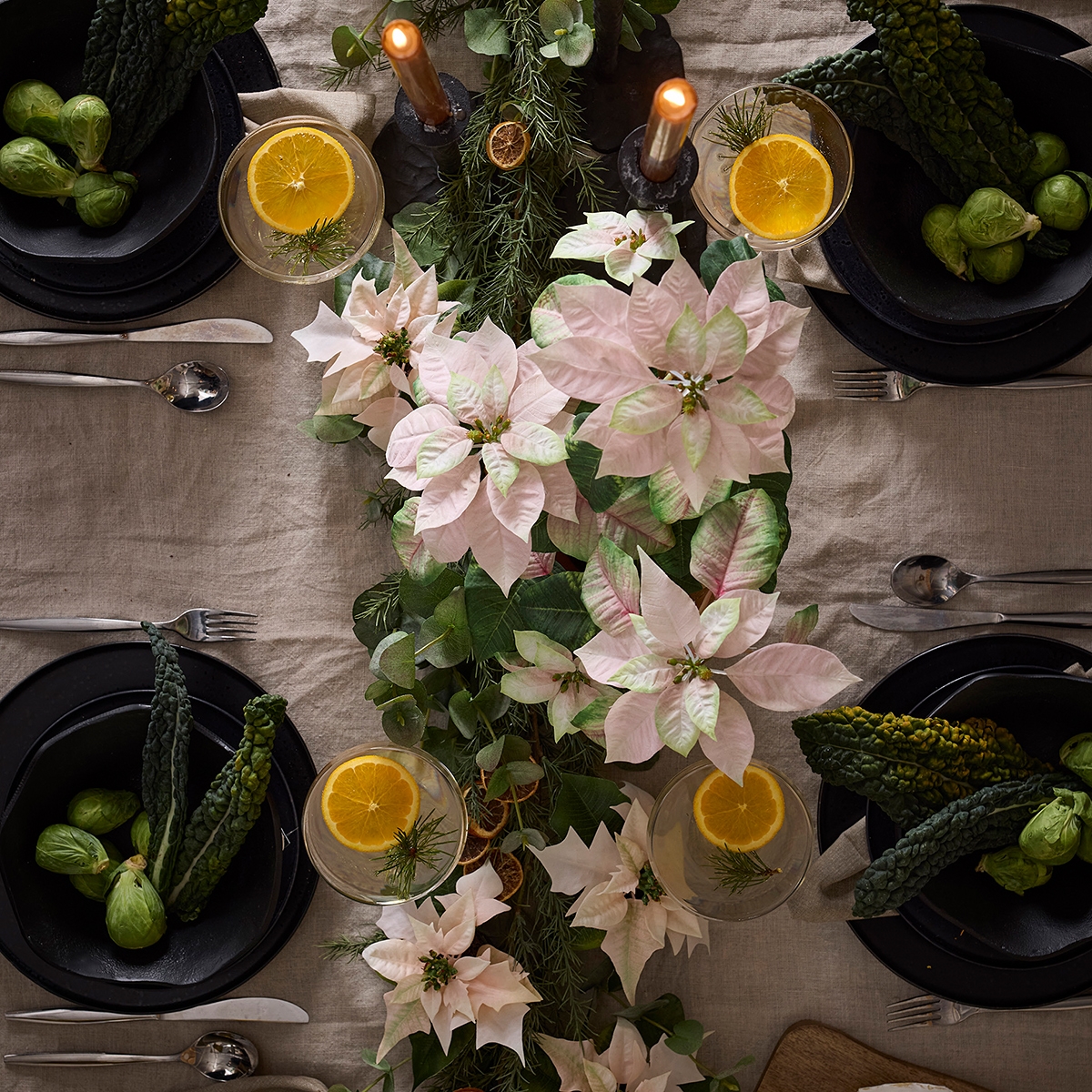 Lille kunstig julestjerne med blomster i en sart peach nuance.