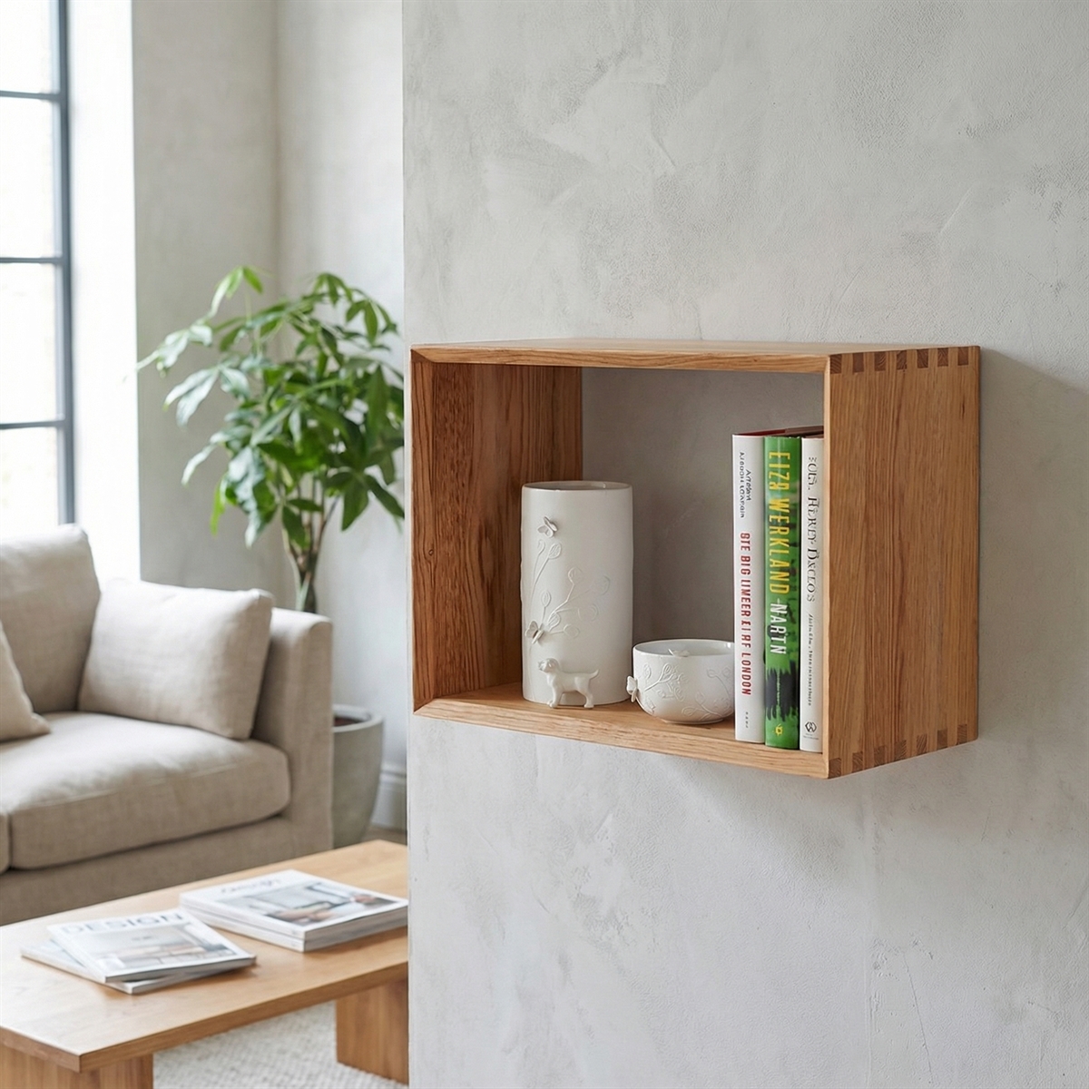 Bogkasse i ren egetræ med fingersamlinger - rektangulærFingersamlinger i egetræ - Smuk design-bogkasse