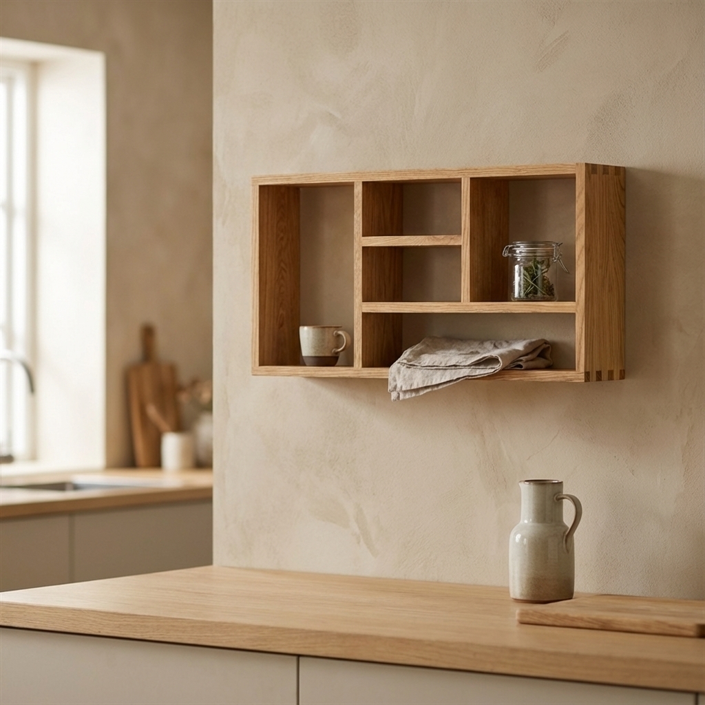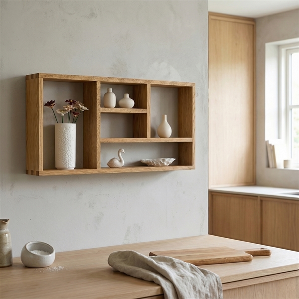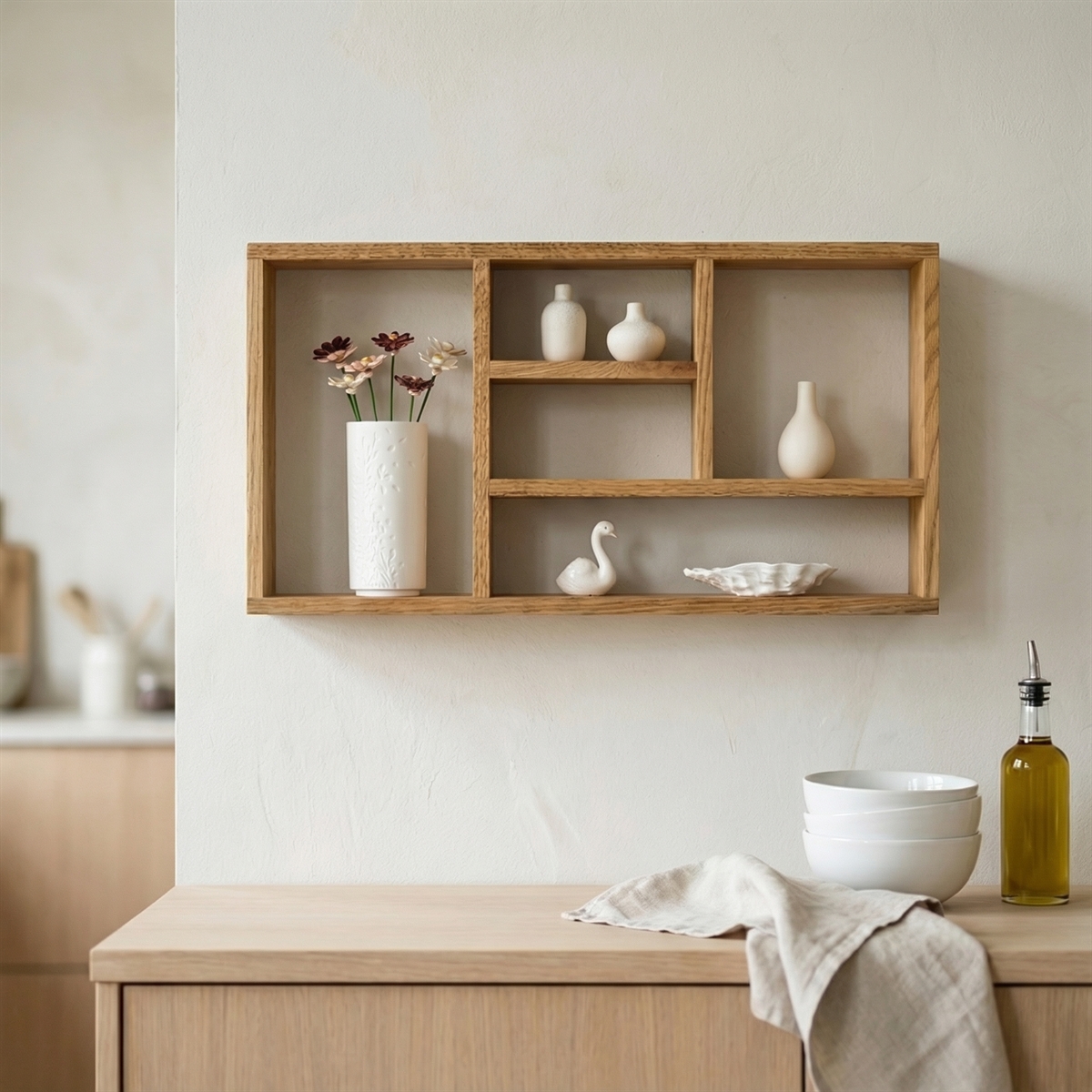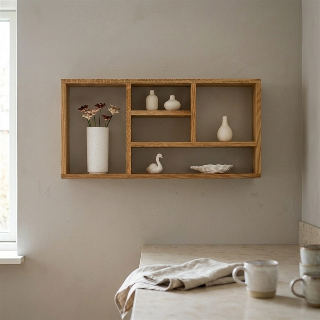 Lake SeeMe sættekassen er, som resten af Lake serien, lavet i massiv egetræ med en naturlig oliering der forlænger hyldens levetid. Kan hænge både horisontalt og vertikalt. Hylden kan bruges til udstilling af samlinger, kopper, sten og krystaller, grønne planter, pynteting, parfumer osv.