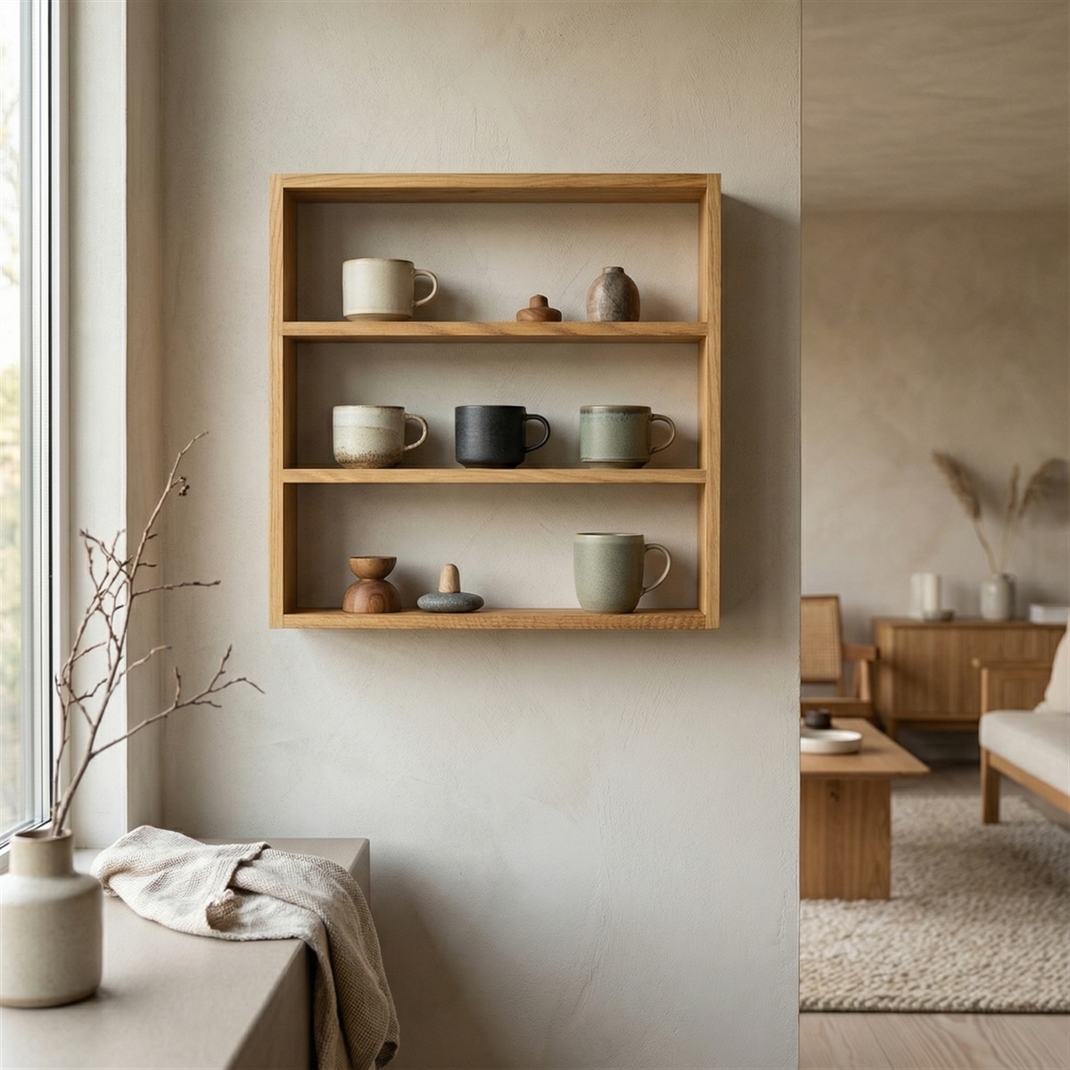 - Det varme egetræ fremhæver uden tvivl dine kopper, krukker og små pyntesager rundt i hjemmet.