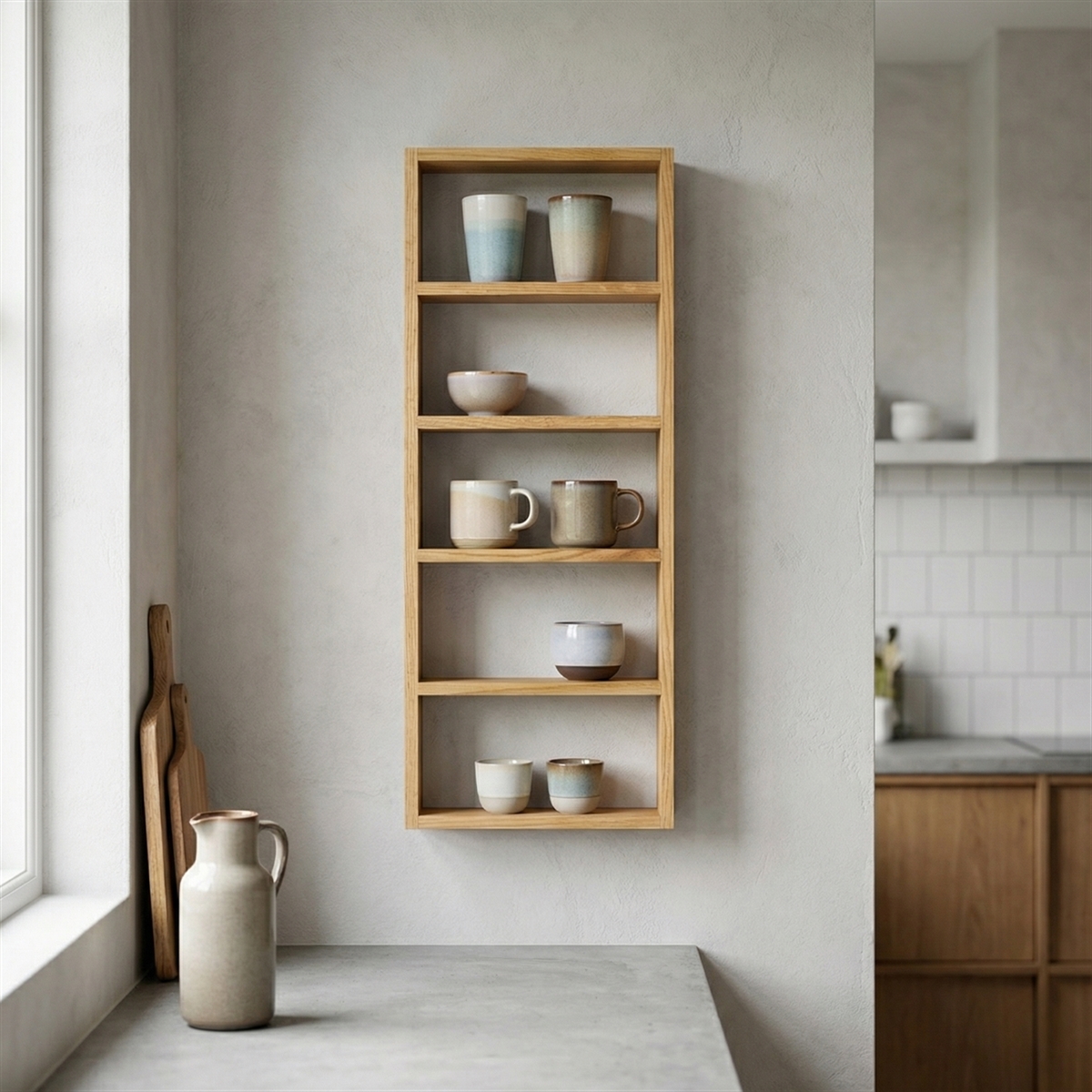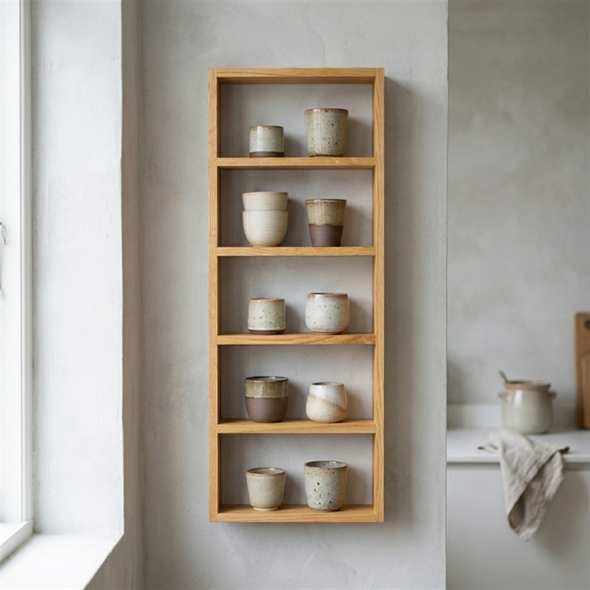 Noon 5 er en hylde i vores egen serie Lake der er lavet i massivt egetræ med tapsamlinger.
