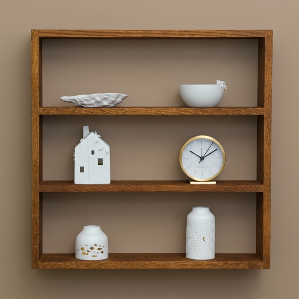 Eksklusiv egetræshylde med 3 rum til dekoration i hjemmet.